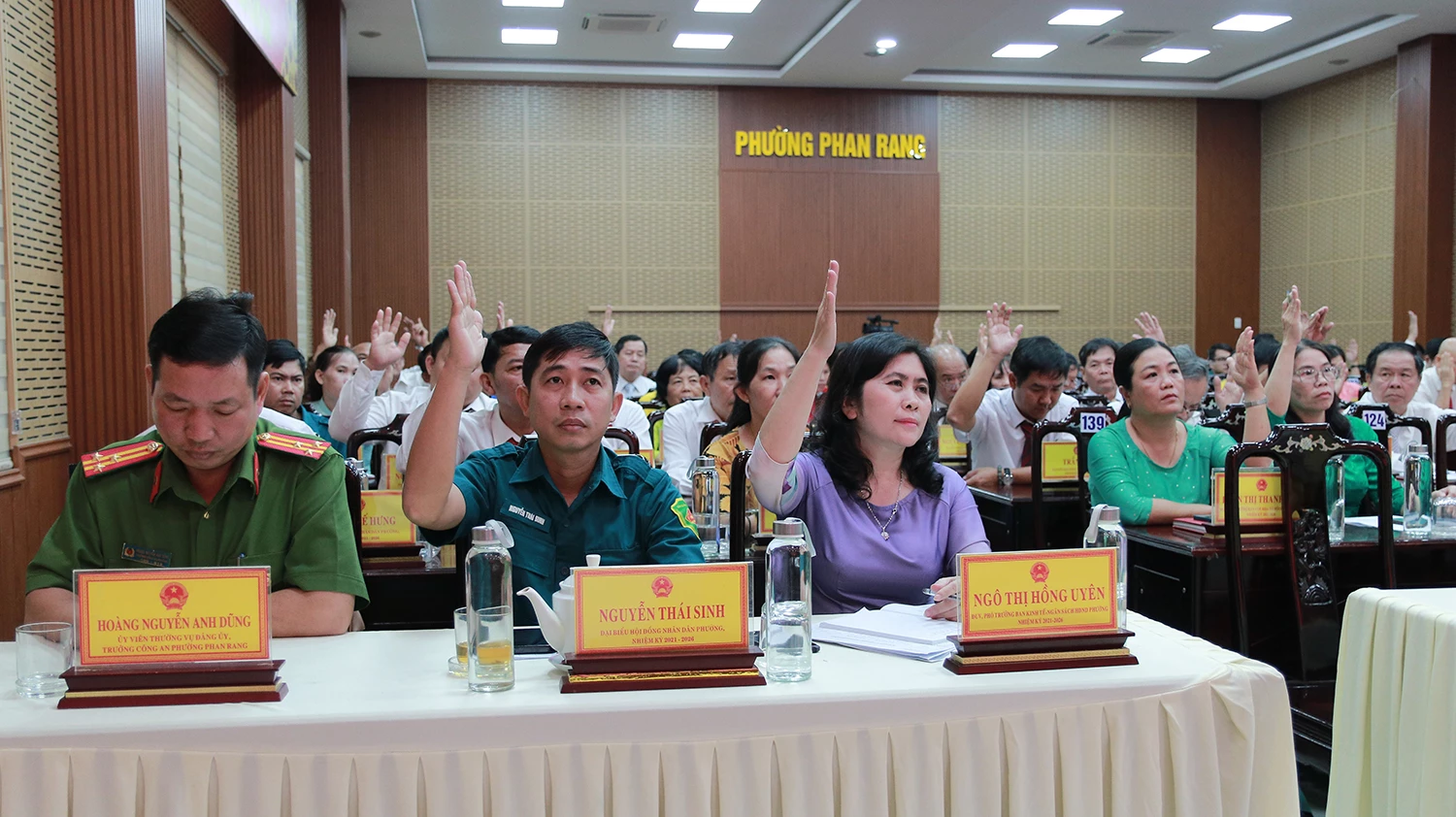 Tại kỳ họp, các đại biểu HĐND phường đã nhất trí biểu quyết thông qua các nghị quyết về kỳ họp thường lệ của HĐND phường năm 2026 và các nghị quyết về: Ban hành Quy chế làm việc của HĐND, Thường trực HĐND, ban HĐND, tổ đại biểu HĐND và đại biểu HĐND phường Phan Rang khóa I, nhiệm kỳ 2021 - 2026; phân bổ ngân sách địa phương năm 2026; dự toán thu ngân sách nhà nước trên địa bàn, chi ngân sách địa phương năm 2026; kế hoạch đầu tư công năm 2026; kế hoạch đầu tư công trung hạn giai đoạn 2026 - 2030; kế hoạch phát triển kinh tế - xã hội năm 2026 và giai đoạn 2026 - 2030…
