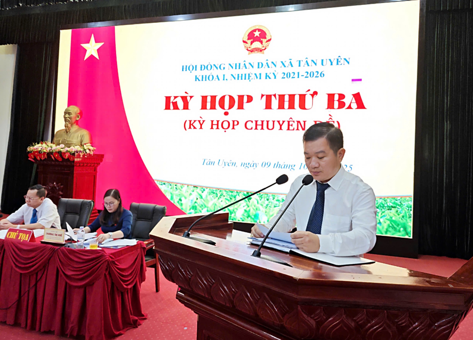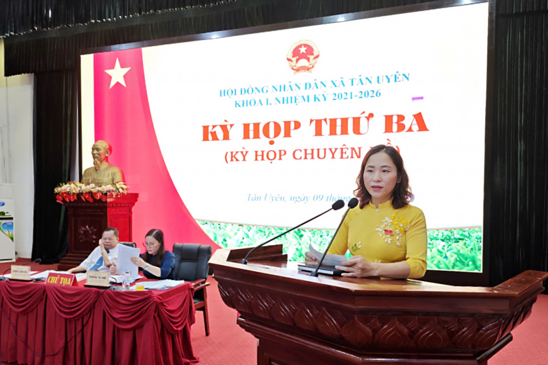 Tại kỳ họp, đồng chí Chu Văn Thanh – Phó Bí thư Đảng ủy, Chủ tịch UBND xã đã thông qua Tờ trình về việc điều chỉnh, bổ sung biên chế công chức, số lượng người làm việc trong các cơ quan, đơn vị trực thuộc UBND xã năm 2025. Cụ thể là điều chỉnh giảm 3 viên chức là giáo viên mầm non của Trường Mầm non Thân Thuộc; tăng 3 viên chức là giáo viên mầm non của Trường Mầm non số 2 Tân Uyên; giao bổ sung 3 biên chế công chức Ban Chỉ huy Quân sự xã năm 2025 để để đảm bảo định mức theo quy định. Thông qua Tờ trình đề nghị điều chỉnh chủ đầu tư 38 danh mục dự án trong kế hoạch đầu tư công trung hạn vốn ngân sách trung ương thực hiện các chương trình mục tiêu quốc gia giai đoạn 2021-2025. Trong đó, có 17 danh mục dự án thuộc Chương trình mục tiêu quốc gia xây dựng nông thôn mới, với tổng kế hoạch vốn là 9.815 triệu đồng; 21 danh mục dự án thuộc Chương trình mục tiêu quốc gia phát triển kinh tế - xã hội vùng đồng bào dân tộc thiểu số và miền núi, tổng kế hoạch vốn 9.513 triệu đồng.