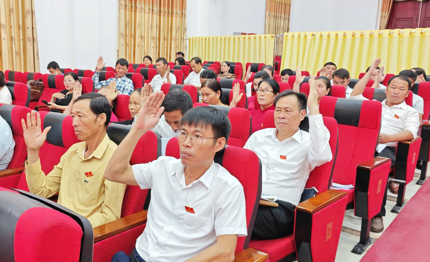 Với tinh thần khẩn trương, nghiêm túc, trách nhiệm và đồng thuận cao, 100% đại biểu tham gia kỳ họp đã thống nhất với các tờ trình và thông qua 8 Nghị quyết quan trọng liên quan tới các vấn đề: biên chế công chức, số lượng người làm việc trong các cơ quan, đơn vị trực thuộc UBND xã năm 2025; xóa nhà tạm, nhà dột nát cho hộ nghèo, hộ cận nghèo; phân bổ, bổ sung ngân sách địa phương năm 2025 sau khi thực hiện sắp xếp đơn vị hành chính các cấp và xây dựng mô hình tổ chức chính quyền địa phương 2 cấp; phương án sử dụng tiền dịch vụ môi trường rừng; giá đất phục vụ công tác bồi thường, hỗ trợ, tái định cư khi Nhà nước thu hồi đất để thực hiện các dự án trên địa bàn xã năm 2025; kế hoạch đầu tư công trung hạn vốn ngân sách trung ương thực hiện các chương trình mục tiêu quốc gia giai đoạn 2021-2025; kế hoạch vốn đầu tư công nguồn ngân sách trung ương năm 2025 thực hiện các chương trình mục tiêu quốc gia.