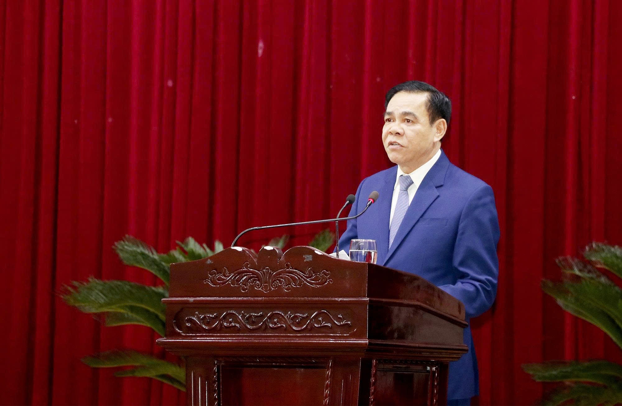 Phó Bí thư Thường trực Tỉnh ủy, Chủ tịch HĐND tỉnh Hoàng Nghĩa Hiếu phát biểu.