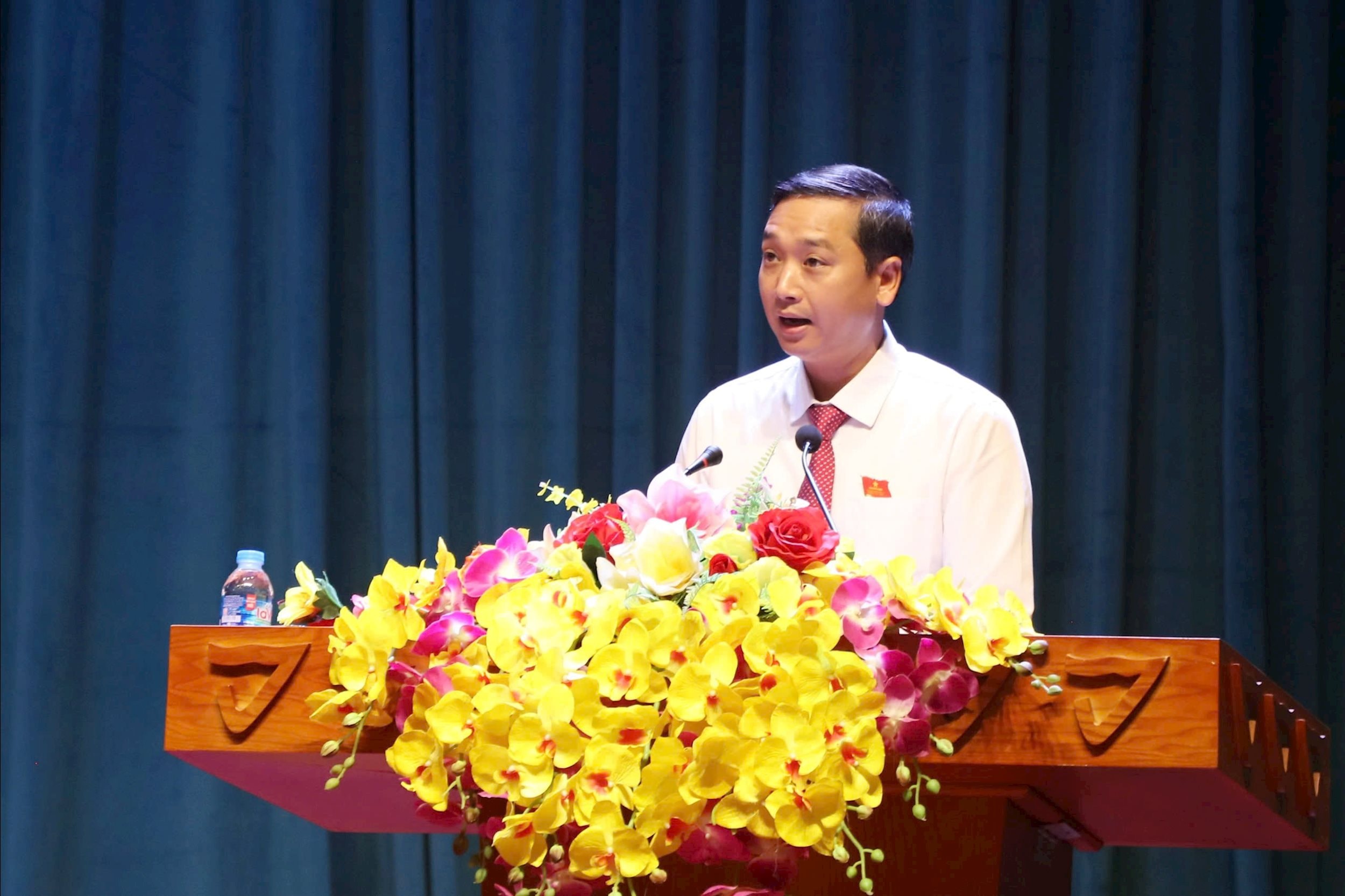Phó Bí thư Tỉnh ủy, Chủ tịch HĐND tỉnh Nguyễn Việt Oanh phát biểu khai mạc kỳ họp. Ảnh: An Nhiên