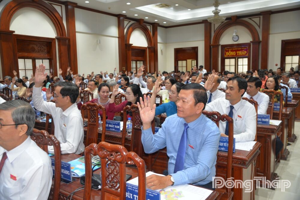 Nghị quyết việc thông qua Đề án Phòng không nhân dân trên địa bàn tỉnh Đồng Tháp giai đoạn 2026 - 2030; Nghị quyết về việc thông qua Đề án “Tổ chức lực lượng, huấn luyện, hoạt động và bảo đảm chế độ, chính sách cho Dân quân tự vệ giai đoạn 2026 - 2030” trên địa bàn tỉnh Đồng Tháp; Nghị quyết Kế hoạch tài chính 05 năm 2026 - 2030; Nghị quyết ban hành cơ chế, chính sách cho vay từ nguồn vốn ngân sách địa phương ủy thác qua Chi nhánh Ngân hàng Chính sách xã hội tỉnh Đồng Tháp; Nghị quyết quy định chính sách hỗ trợ chuyển đổi nghề, giải bản đối với tàu cá không có nhu cầu hoạt động khai thác trên địa bàn tỉnh Đồng Tháp; Nghị quyết quy định chính sách hỗ trợ ngư dân nâng cấp, thay thế thiết bị giám sát hành trình tàu cá đáp ứng điều kiện theo quy định tại Nghị định số 37/2024/NĐ-CP và duy trì kết nối hệ thống thiết bị giám sát hành trình tàu cá trên địa bàn tỉnh Đồng Tháp; Nghị quyết quy định Bảng giá đất lần đầu trên địa bàn tỉnh Đồng Tháp để áp dụng từ ngày 1-1-2026.