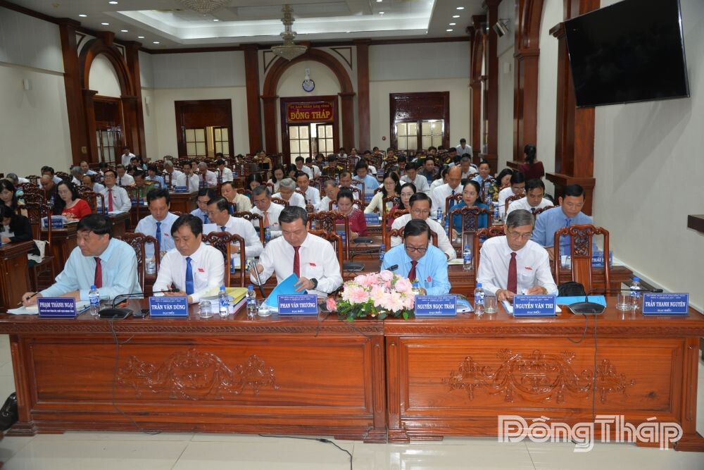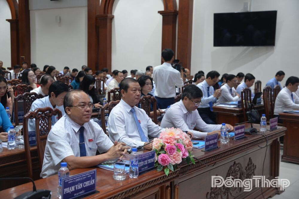 Phó Bí thư Tỉnh ủy, Chủ tịch HĐND tỉnh Châu Thị Mỹ Phương; Ủy viên Ban Thường vụ Tỉnh ủy, Phó Chủ tịch Thường trực HĐND tỉnh Phạm Văn Chuẩn và Ủy viên Ban Thường vụ Tỉnh ủy, Phó Chủ tịch HĐND tỉnh Trần Thanh Nguyên chủ tọa Kỳ họp.