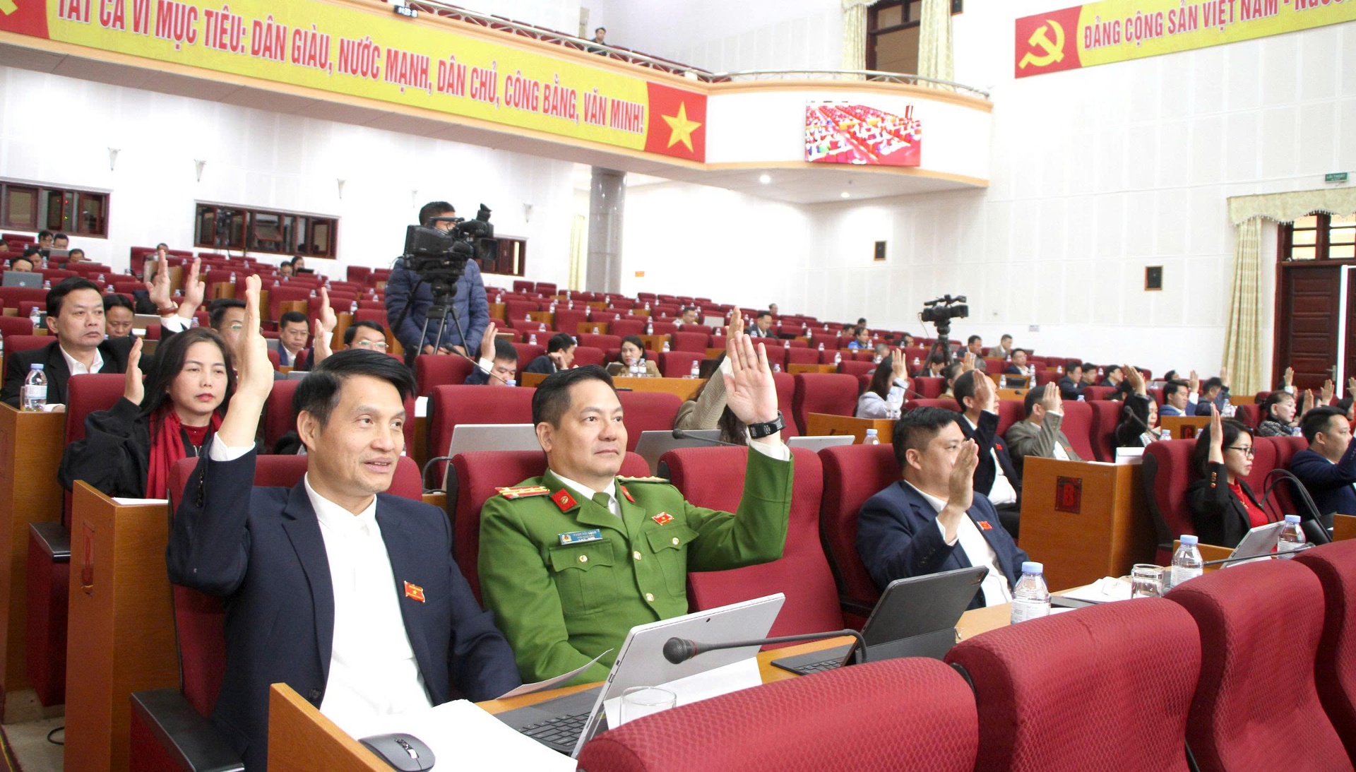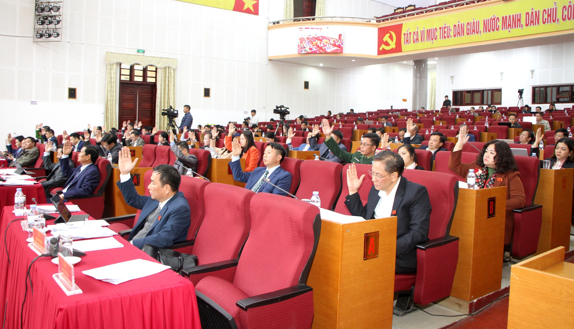 Các đại biểu HĐND tỉnh biểu quyết thông qua các nghị quyết tại kỳ họp.