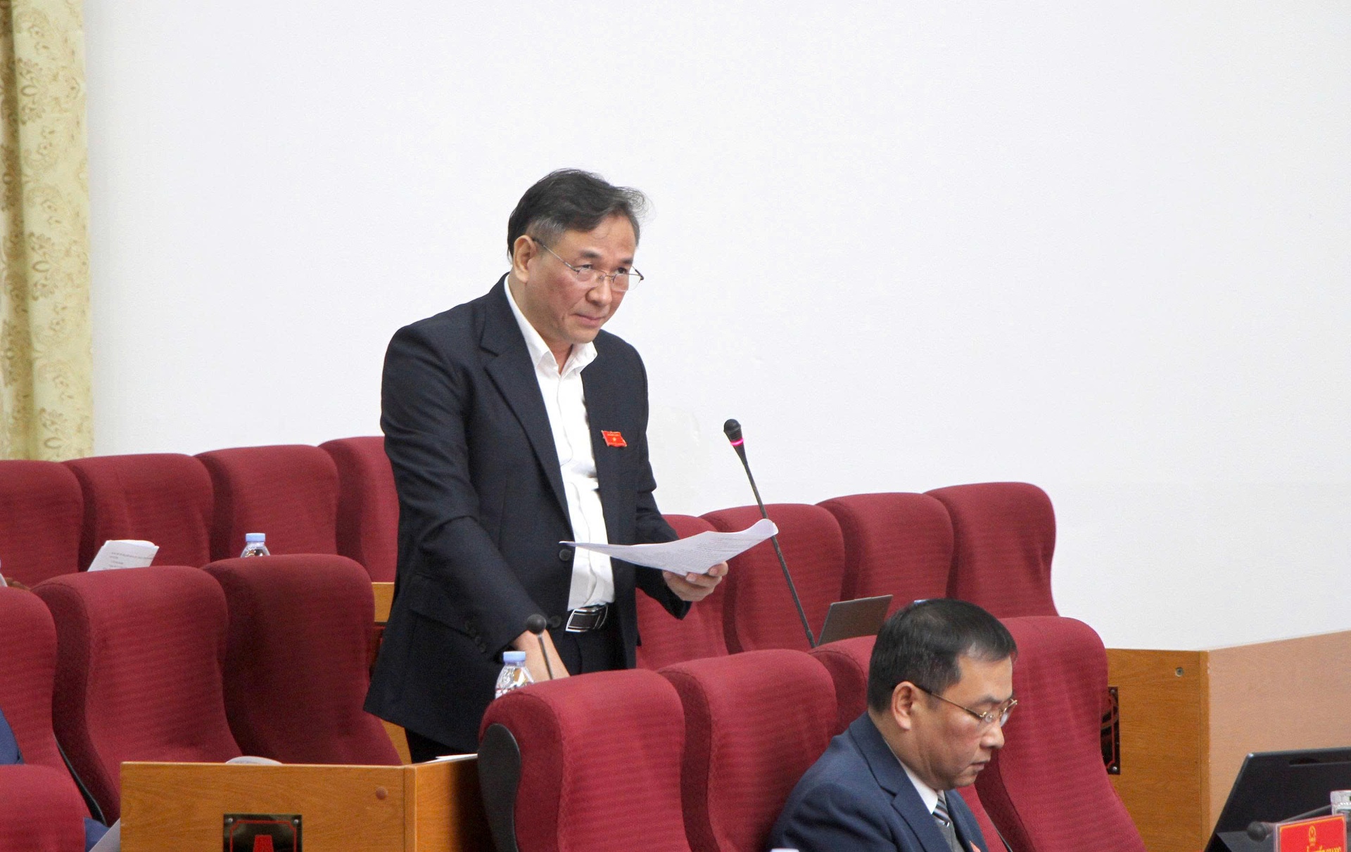 Đại biểu Đào Xuân Huyên – Trưởng Ban Văn hóa – Xã hội (HĐND tỉnh) tham gia ý kiến về một số nội dung trong dự thảo các nghị quyết.