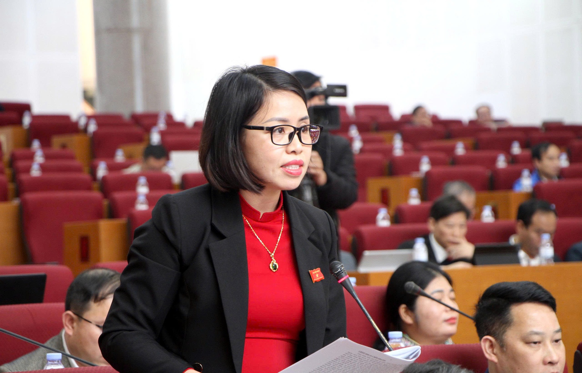 Đại biểu Chang Phương Thảo - Phó trưởng Ban Pháp chế (HĐND tỉnh) tham gia ý kiến về một số nội dung trong dự thảo các nghị quyết.