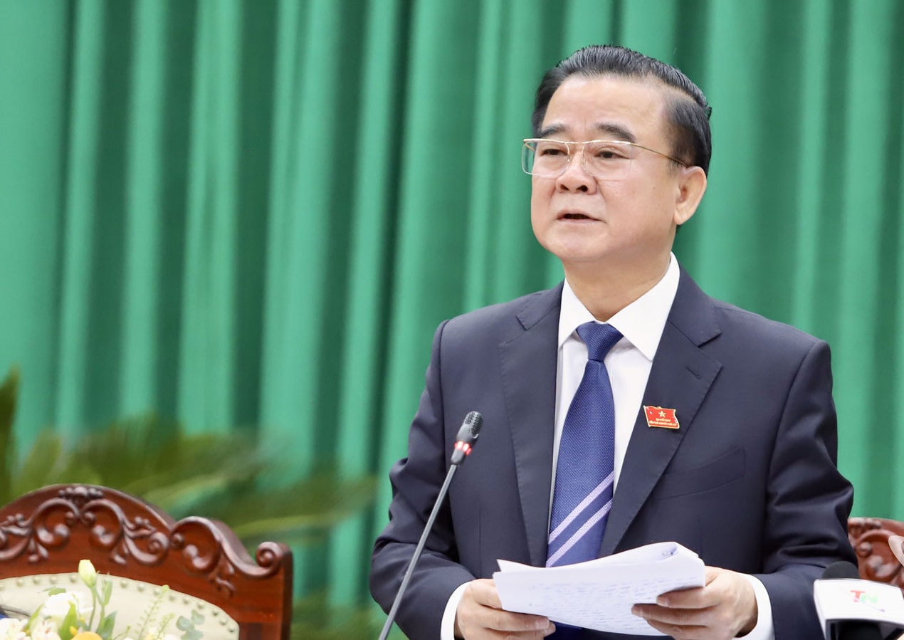 Phó Bí thư Tỉnh ủy, Chủ tịch UBND tỉnh Vương Quốc Tuấn phát biểu tại kỳ họp.