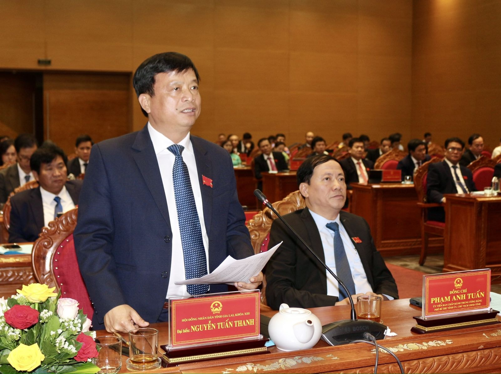 Phó Chủ tịch Thường trực UBND tỉnh Nguyễn Tuấn Thanh phát biểu làm rõ các ý kiến của đại biểu HĐND tỉnh. Ảnh: Ngọc Minh