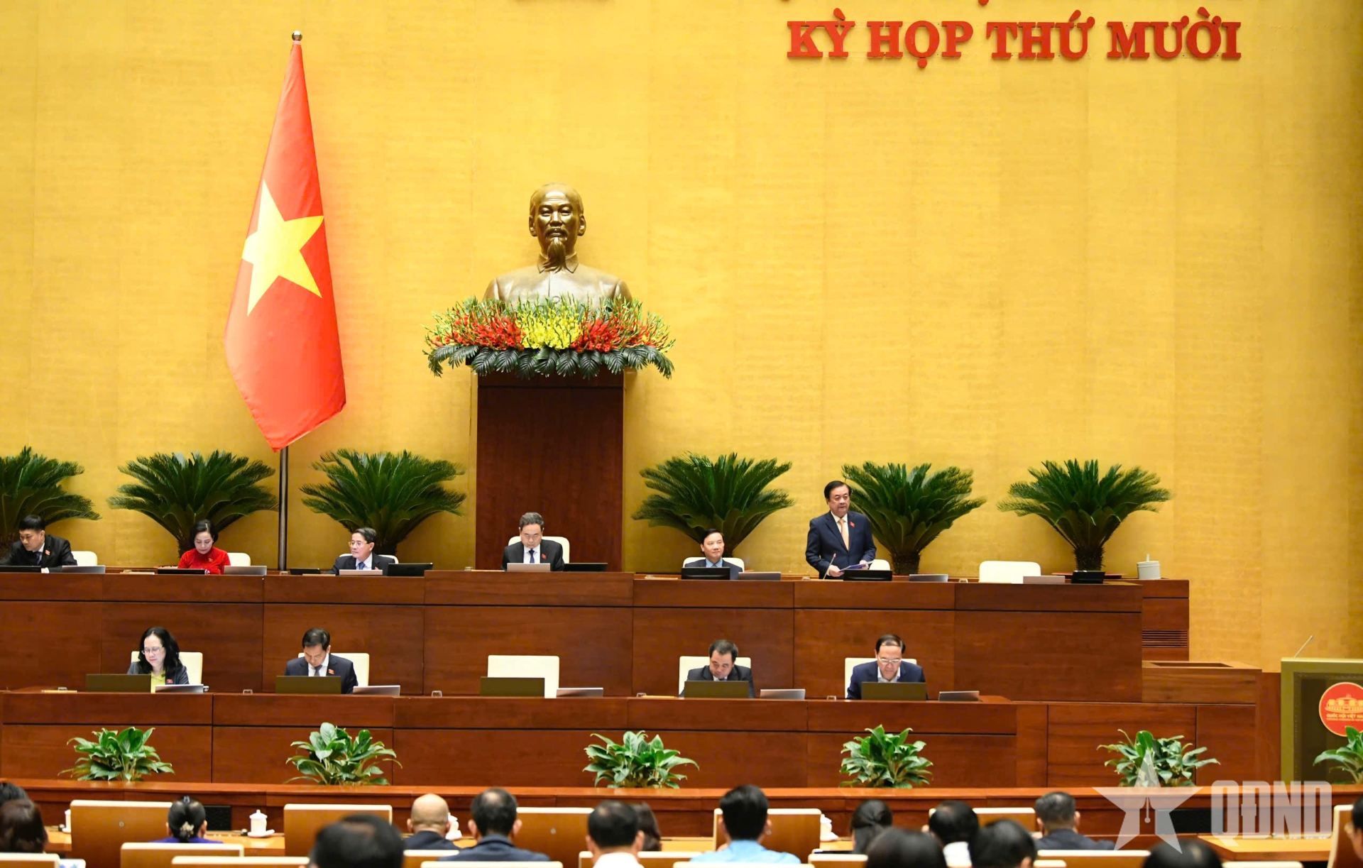 Chủ tịch Quốc hội Trần Thanh Mẫn chủ trì, Phó chủ tịch Quốc hội Lê Minh Hoan điều hành phiên họp. Ảnh: TRỌNG HẢI