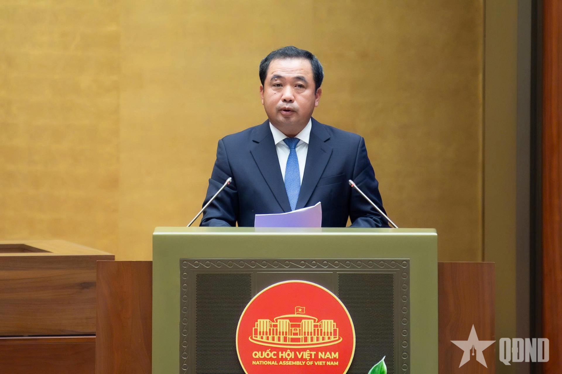 Bộ trưởng Bộ Nông nghiệp và Môi trường Trần Đức Thắng phát biểu giải trình trước Quốc hội. Ảnh: TRỌNG HẢI