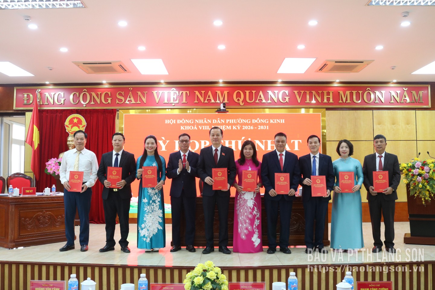 Các đại biểu nhận giấy chứng nhận đại biểu HĐND phường Đông Kinh khóa VIII nhiệm kỳ 2026 - 2031