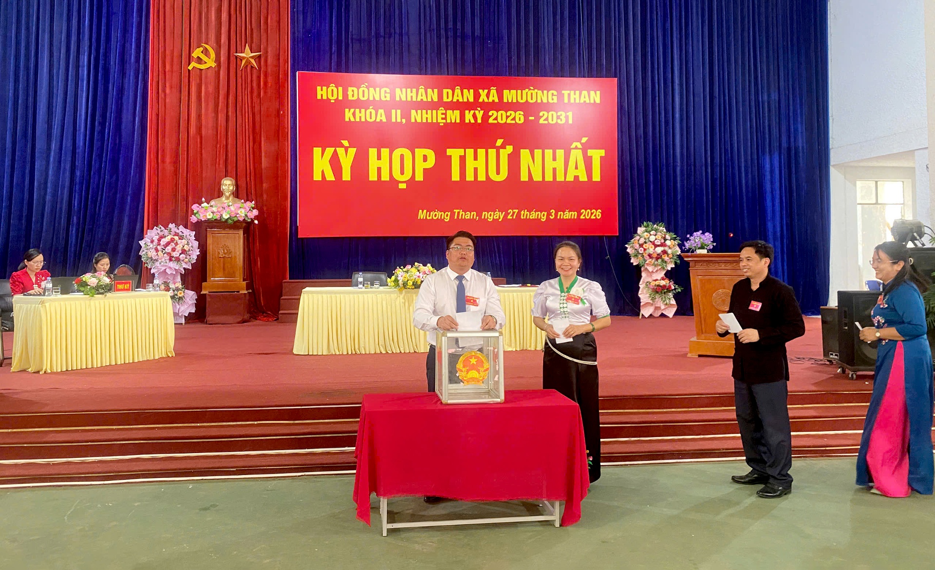 Kỳ họp tiến hành bầu các chức danh của HĐND, UBND, trưởng các Ban HĐND, Ủy viên UBND xã trên tinh thần dân chủ, khách quan, minh bạch, đúng trình tự và quy định của pháp luật. Kết quả, đồng chí Tao Văn Giót - Bí thư Đảng ủy được bầu giữ chức Chủ tịch HĐND xã; đồng chí Tòng Thị Đoan giữ chức Phó Chủ tịch HĐND xã; đồng chí Nguyễn Thị Thu Thủy giữ chức Chủ tịch UBND xã; các đồng chí: Hoàng Phi Hùng, Cao Khánh Toàn giữ chức Phó Chủ tịch UBND xã.