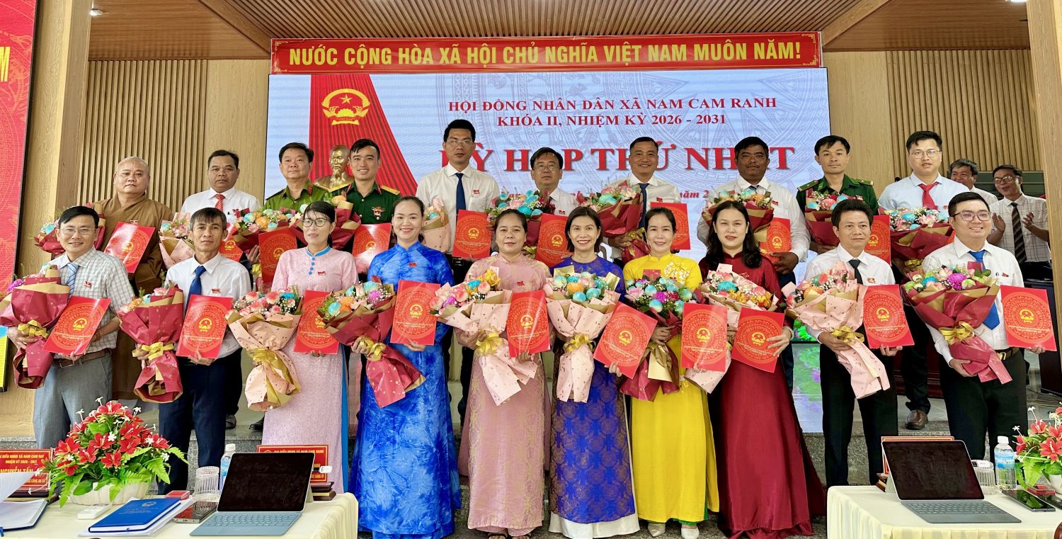 Tại kỳ họp, Ủy ban Bầu cử xã báo cáo kết quả bầu cử đại biểu HĐND xã, nhiệm kỳ 2026 - 2031 và kết quả xác nhận tư cách đại biểu HĐND xã Nam Cam Ranh khóa II, nhiệm kỳ 2026 - 2031 gồm 20 đại biểu. Với tinh thần dân chủ, đoàn kết, thống nhất cao, HĐND xã tiến hành bầu các chức danh lãnh đạo chủ chốt của HĐND, UBND xã và các ban của HĐND xã nhiệm kỳ 2026 - 2031. Theo đó, ông Vương Xuân Phương - Bí thư Đảng ủy, Chủ tịch HĐND xã nhiệm kỳ 2021 - 2026 tiếp tục được bầu giữ chức Chủ tịch HĐND xã nhiệm kỳ 2026 - 2031; bà Lâm Thị Phương Nga - Ủy viên Ban Thường vụ Đảng ủy xã, Phó Chủ tịch HĐND xã nhiệm kỳ 2021 - 2026 tiếp tục được bầu giữ chức Phó Chủ tịch HĐND xã kiêm Trưởng Ban Kinh tế - Ngân sách HĐND xã nhiệm kỳ 2026 - 2031. Ông Hà Thế Ân - Phó Bí thư Đảng ủy, Chủ tịch UBND xã nhiệm kỳ 2021 - 2026 tiếp tục được bầu giữ chức Chủ tịch UBND xã nhiệm kỳ 2026 - 2031; ông Nguyễn Bình Nam và bà Nguyễn Trần Quyên Dy - Phó Chủ tịch UBND xã nhiệm kỳ 2021 - 2026 tiếp tục được bầu giữ chức Phó Chủ tịch UBND xã nhiệm kỳ 2026 - 2031. Đồng thời, bầu ủy viên UBND xã nhiệm kỳ 2026 - 2031 gồm 4 thành viên.