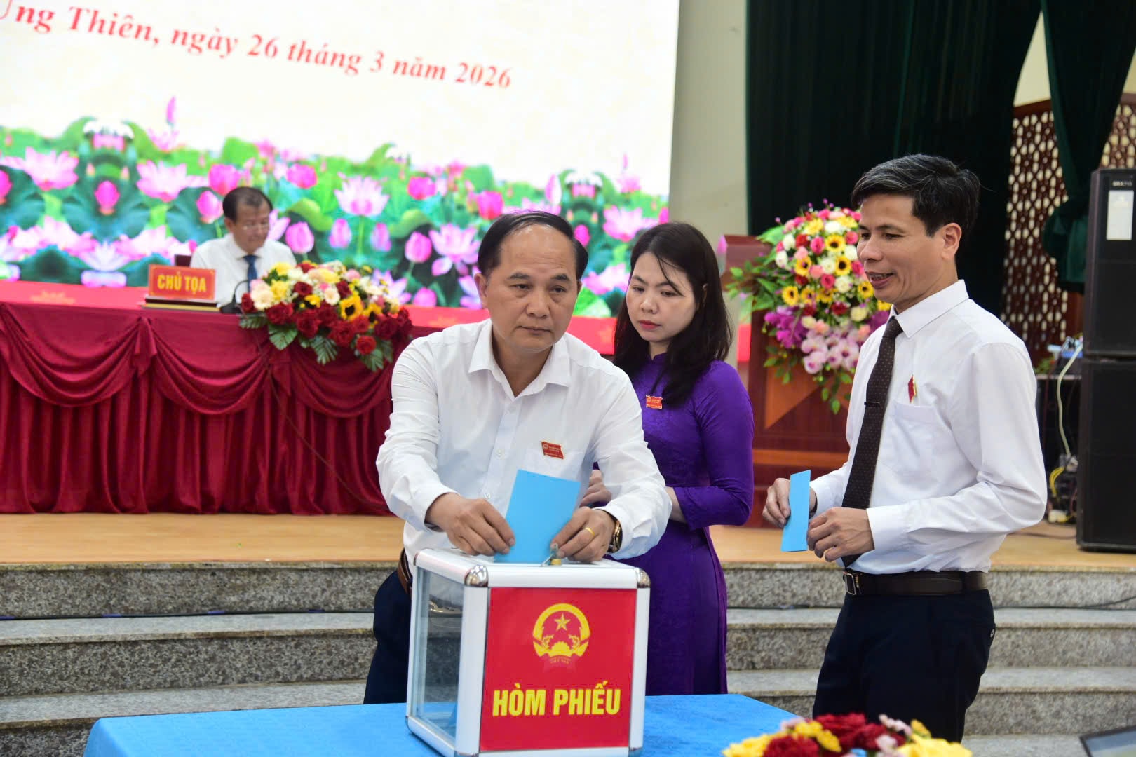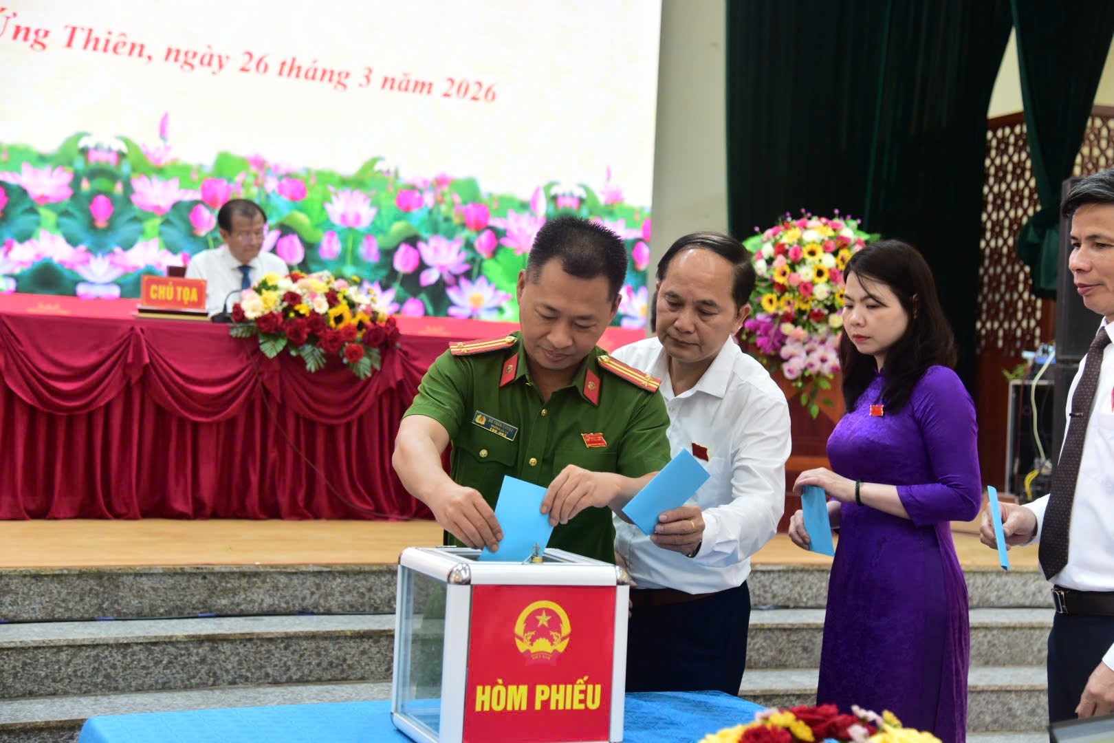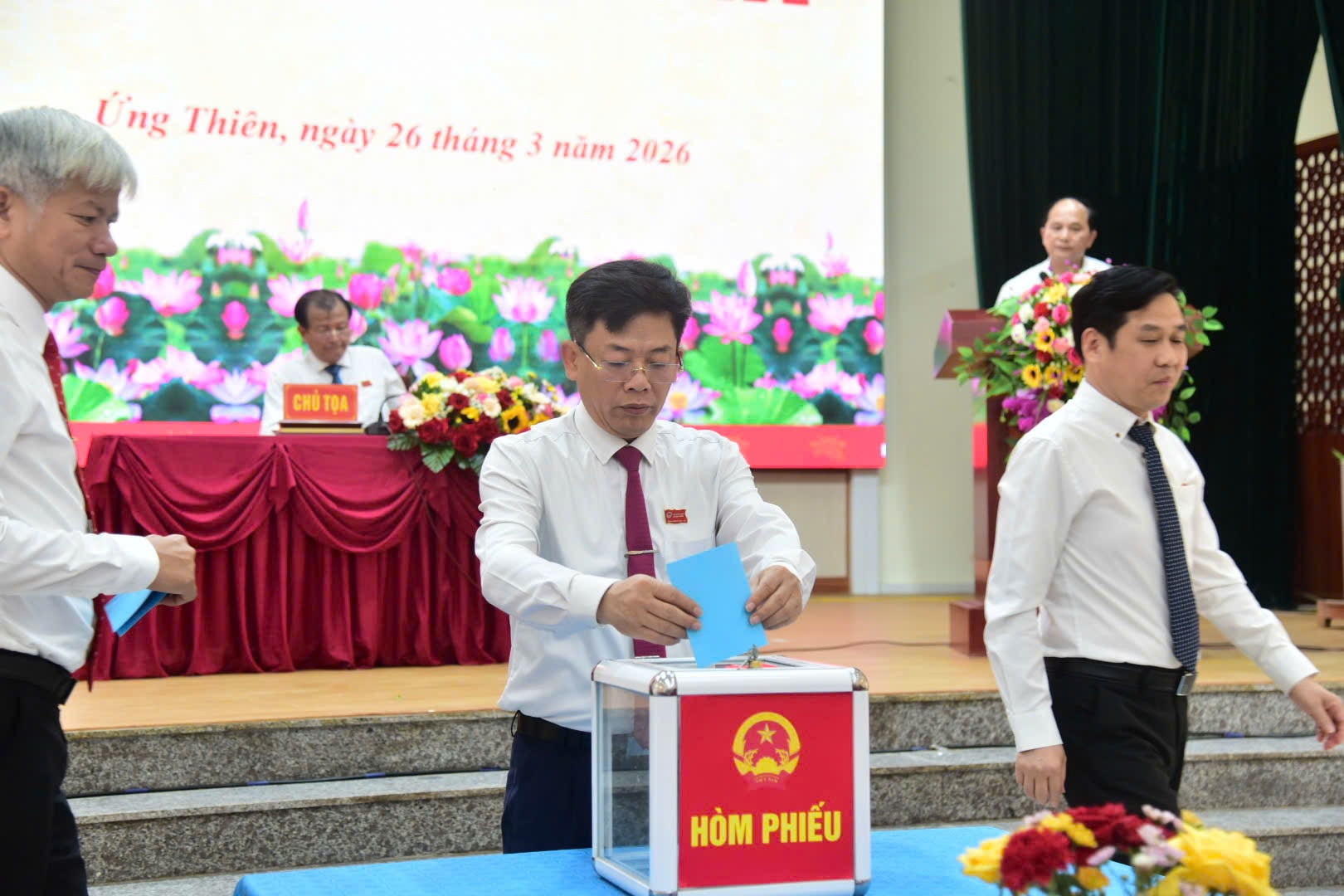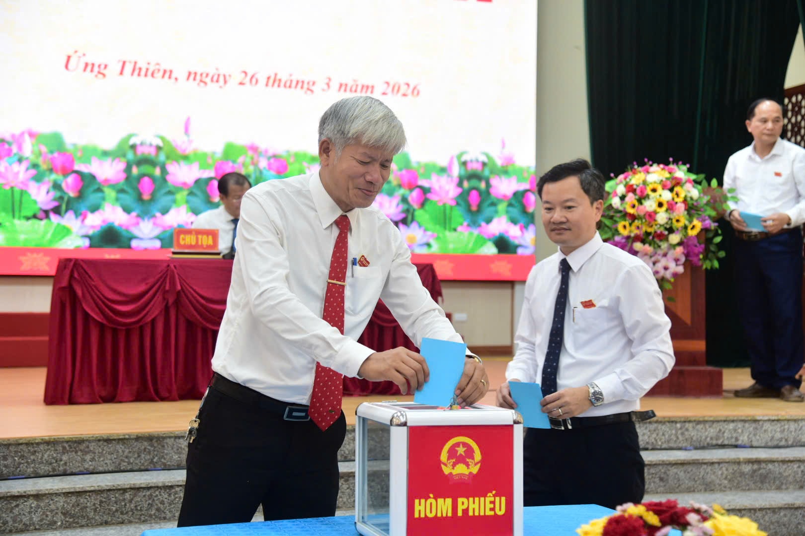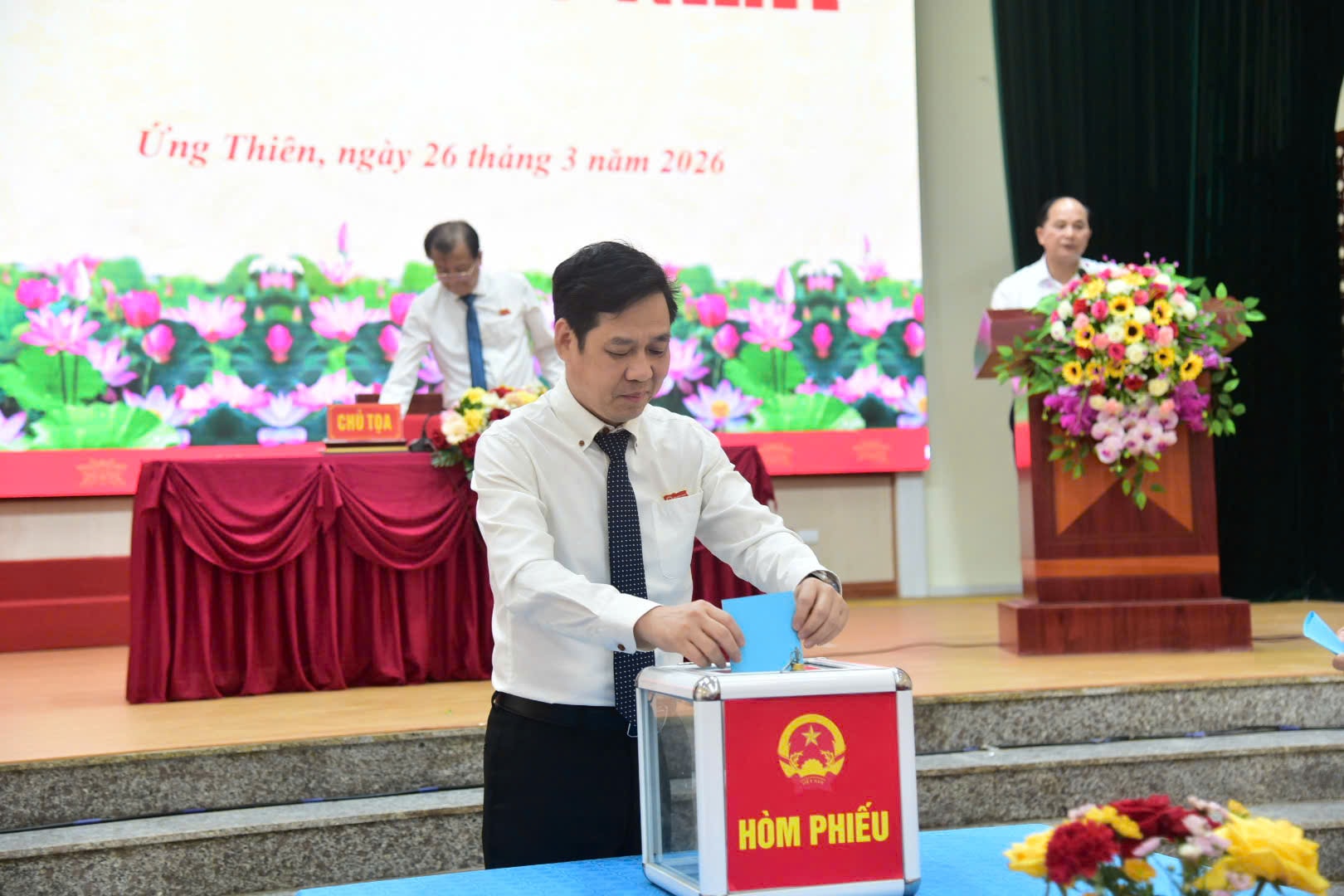 Kỳ họp cũng tiến hành bầu các chức danh của UBND xã, gồm: Chủ tịch, các Phó Chủ tịch và Ủy viên UBND xã nhiệm kỳ 2026-2031. Lãnh đạo UBND xã Ứng Thiên nhiệm kỳ mới phát biểu nhận nhiệm vụ, cam kết phát huy tinh thần trách nhiệm, tập trung chỉ đạo thực hiện hiệu quả các nhiệm vụ phát triển kinh tế - xã hội, nâng cao chất lượng phục vụ nhân dân, đẩy mạnh cải cách hành chính, góp phần xây dựng chính quyền hoạt động hiệu lực, hiệu quả.