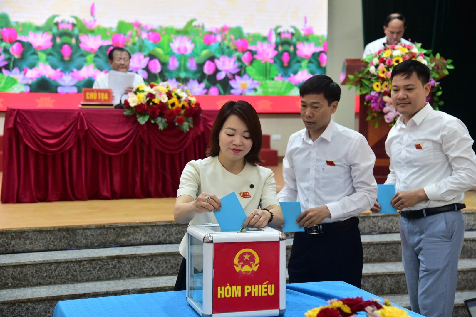 Các đại biểu bỏ phiếu bầu các chức danh. Ảnh: Vân Nga