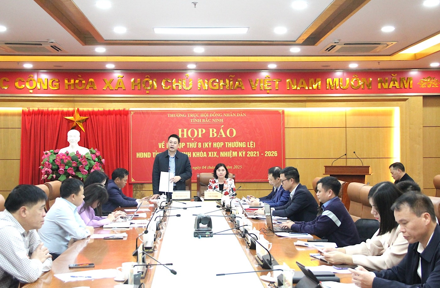 Tại buổi họp báo, đại diện lãnh đạo, phóng viên các cơ quan báo chí đề nghị các Ban HĐND tỉnh và cơ quan chức năng làm rõ hơn về: Tốc độ phát triển kinh tế - xã hội của tỉnh Bắc Ninh năm 2025; các nội dung chủ yếu sẽ được đưa ra chất vấn tại kỳ họp; việc chuyển đổi mục đích sử dụng rừng, nhất là đối với rừng phòng hộ; nội dung cơ bản của nghị quyết quy định mức chi giải thưởng, bồi dưỡng đối với cuộc thi, hội thi, hội diễn, liên hoan thuộc lĩnh vực văn hóa, nghệ thuật trên địa bàn tỉnh; điểm mới của chính sách hỗ trợ đào tạo nhân lực phục vụ các ngành công nghiệp mũi nhọn, công nghiệp bán dẫn, trí tuệ nhân tạo, công nghiệp số…