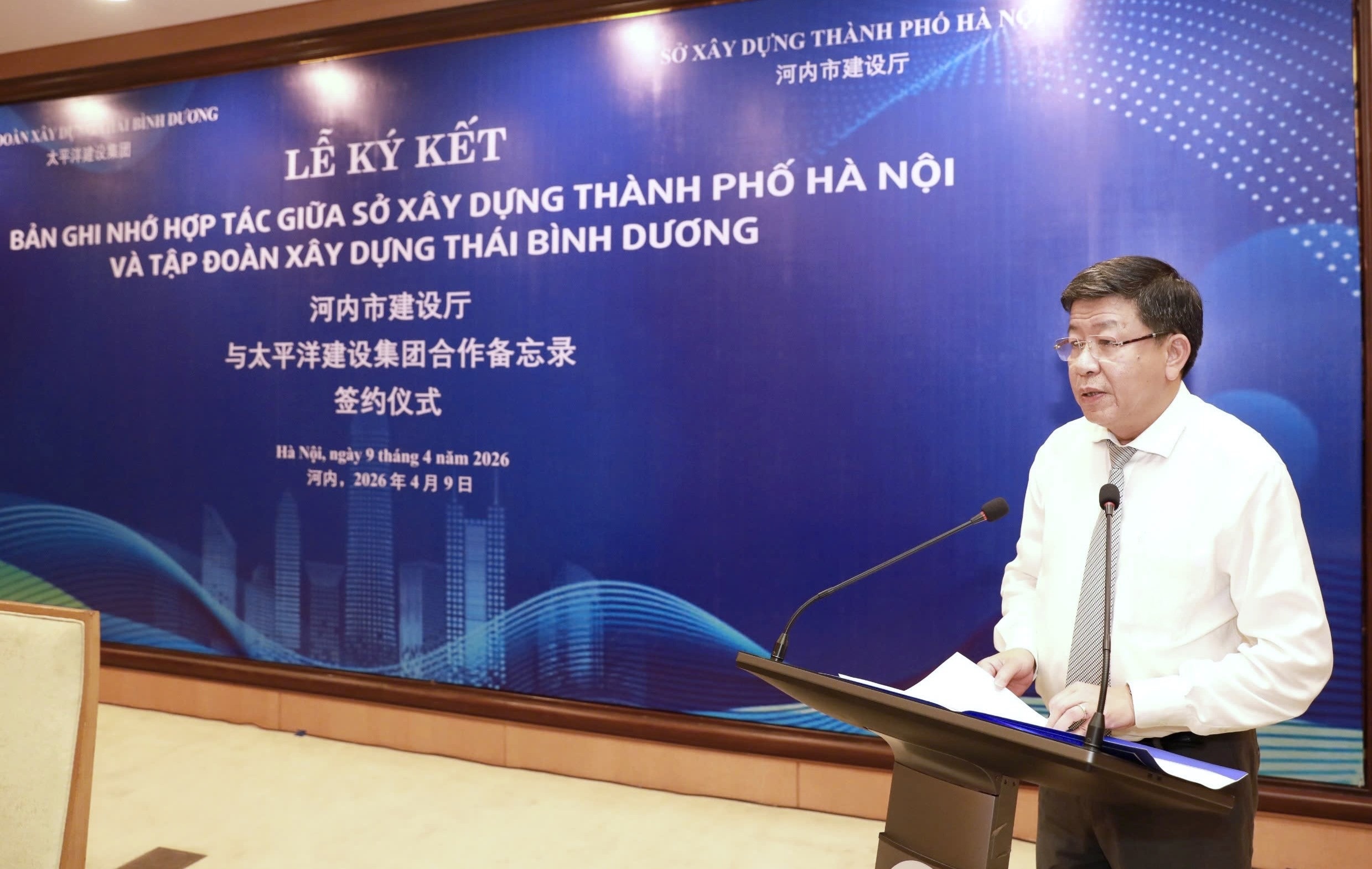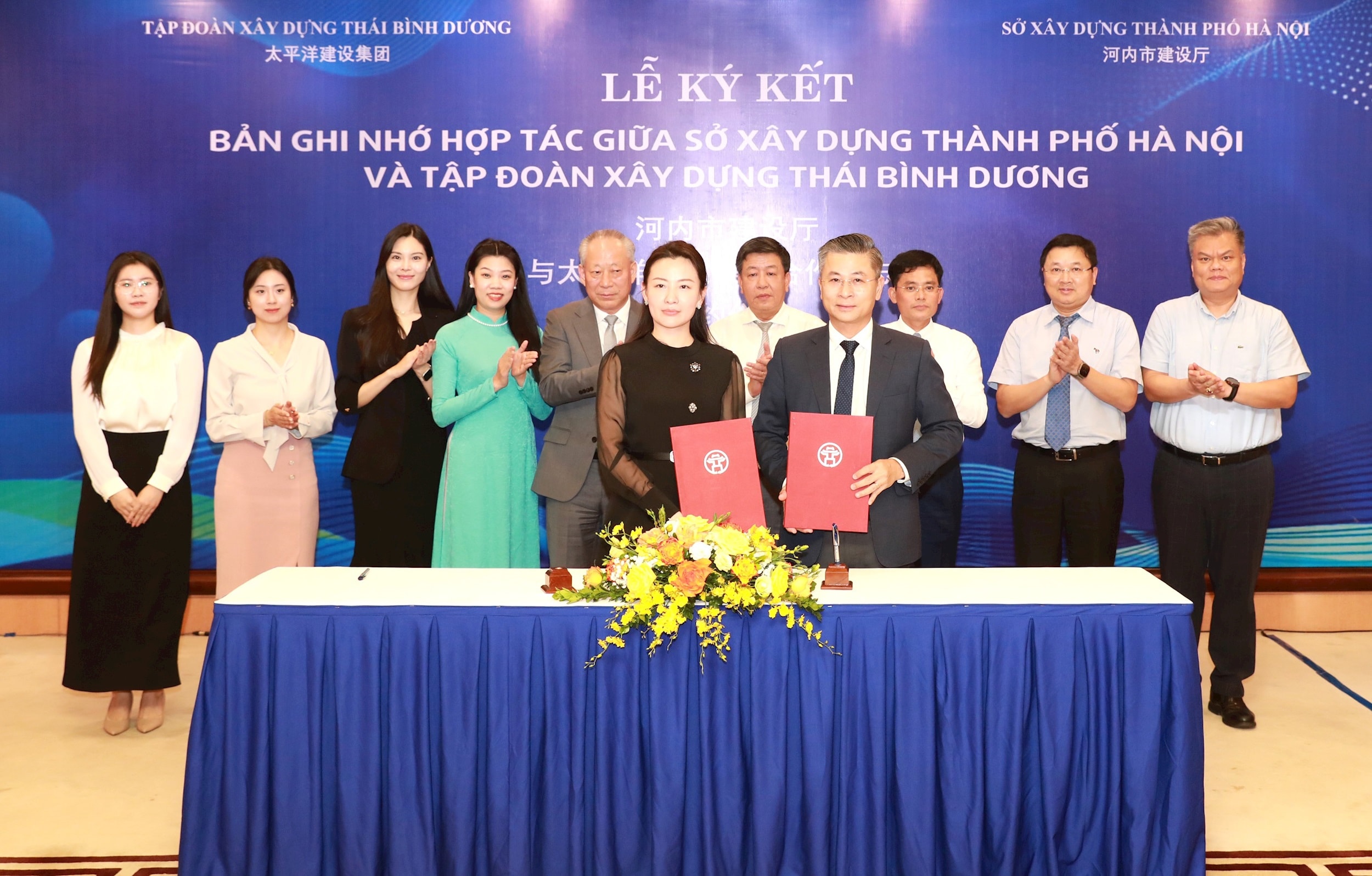 Tại Lễ ký kết, trước sự chứng kiến của các đồng chí lãnh đạo thành phố Hà Nội và Tập đoàn Xây dựng Thái Bình Dương, Giám đốc Sở Xây dựng Nguyễn Phi Thường và Bà Ngô Tĩnh - Tổng Giám đốc Tập đoàn Xây dựng Thái Bình Dương đã cùng ký kết Biên bản ghi nhớ hợp tác giữa Sở Xây dựng Hà Nội và Tập đoàn Xây dựng Thái Bình Dương.