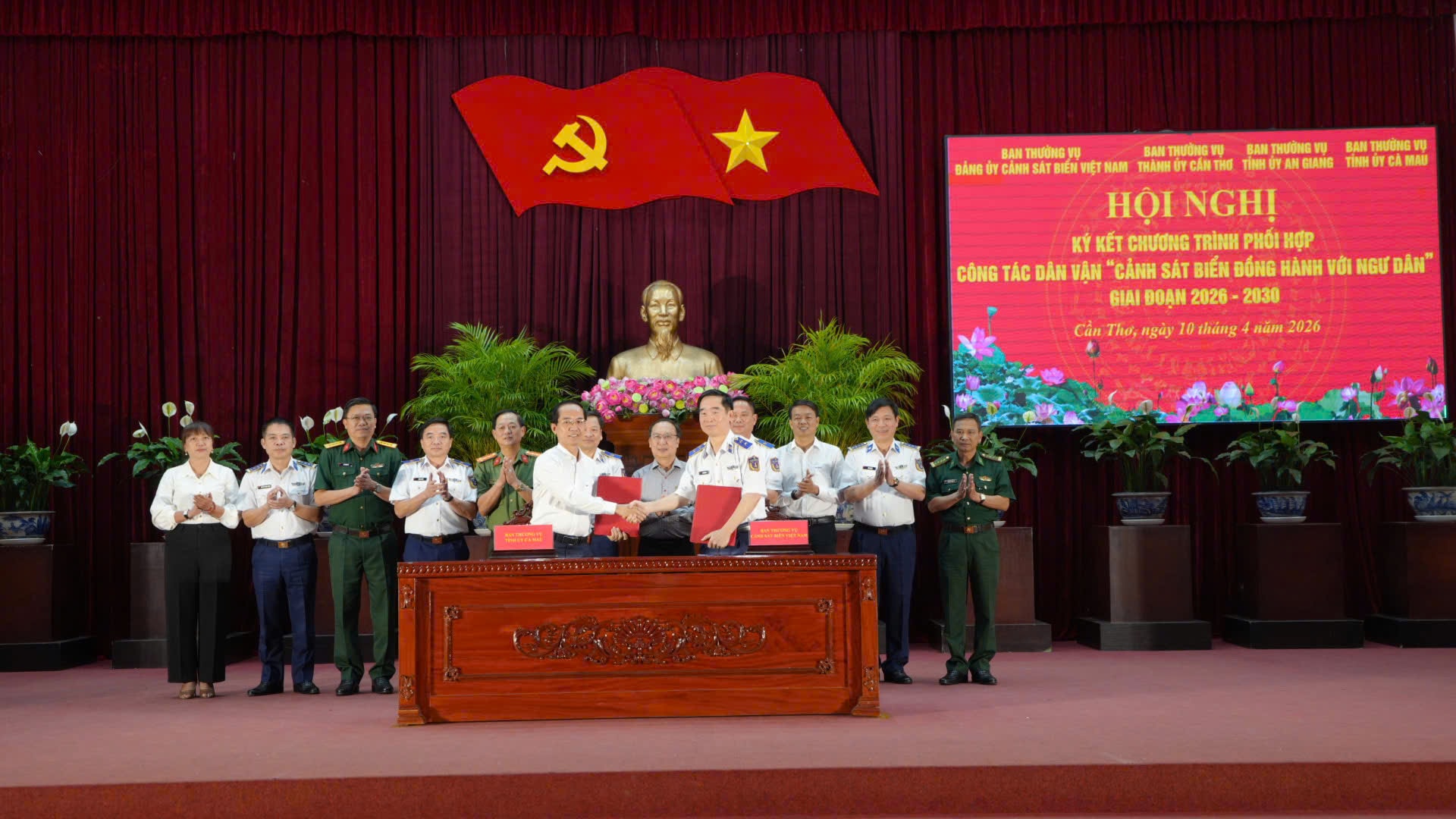 Bộ Tư lệnh Cảnh sát biển Vùng 4 và đại diện lãnh đạo tỉnh Cà Mau ký kết chương trình hợp tác