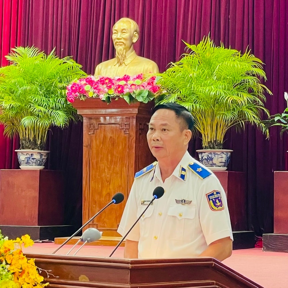 Bí thư Đảng ủy, Chính ủy Bộ Tư lệnh Cảnh sát biển Vùng 4, Thiếu tướng Nguyễn Văn Dũng phát biểu tại hội nghị