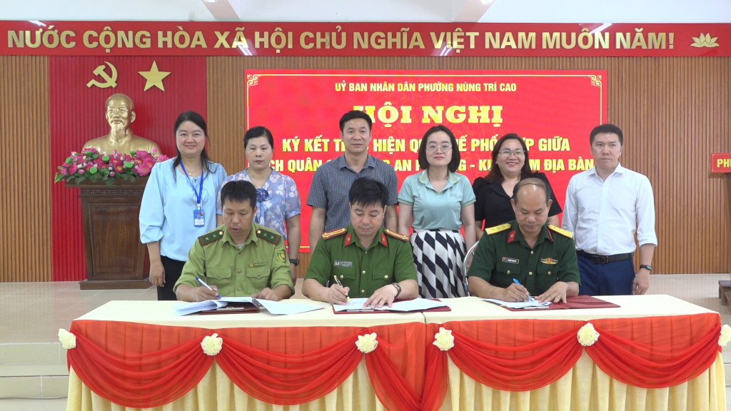 Tại hội nghị, Ban Chỉ huy Quân sự phường, Công an phường và Kiểm lâm địa bàn phường Nùng Trí Cao tiến hành ký kết quy chế phối hợp. Việc ký kết nhằm tăng cường sự lãnh đạo, chỉ đạo thống nhất; phát huy vai trò, trách nhiệm của từng lực lượng trong thực hiện nhiệm vụ, góp phần giữ vững an ninh chính trị, trật tự an toàn xã hội, bảo vệ tài nguyên rừng và xây dựng địa bàn an toàn, ổn định.
