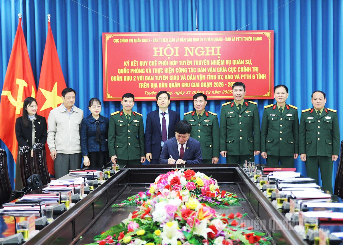 Đại tá Đào Ngọc Phương, Phó Chủ nhiệm Chính trị Quân khu 2 chủ trì hội nghị ký kết. Dự hội nghị có các đồng chí Ủy viên BCH Đảng bộ tỉnh: Nguyễn Lam Sơn, Phó Trưởng ban Thường trực Ban Tuyên giáo và Dân vận Tỉnh ủy; Mai Đức Thông, Giám đốc Báo và phát thanh, truyền hình Tuyên Quang, Chủ tịch Hội Nhà báo tỉnh; Nguyễn Hoài Nam, Chính ủy Bộ CHQS tỉnh; các đồng chí lãnh đạo, chỉ huy, đại diện phòng chuyên môn các đơn vị.