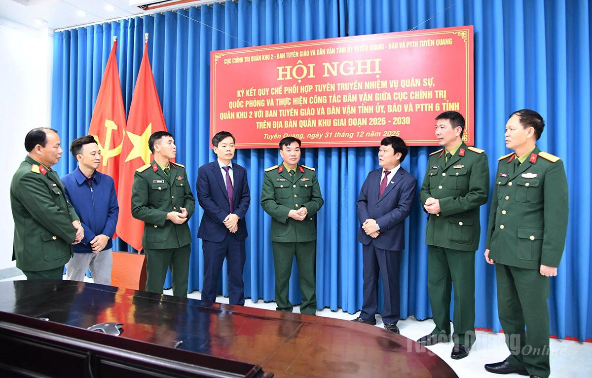 Theo quy chế phối hợp mới, Ban Tuyên giáo và Dân vận Tỉnh ủy tiếp tục trao đổi thông tin, thống nhất với Cục Chính trị Quân khu 2 đánh giá tình hình kết quả phát triển kinh tế - xã hội địa phương; tăng cường công tác chỉ đạo, định hướng tuyên truyền về nhiệm vụ quân sự, quốc phòng, công tác dân vận, dân tộc, tôn giáo. Phối hợp chặt chẽ với Bộ CHQS tỉnh tăng cường tuyên truyền hoạt động quân sự, quốc phòng của lực lượng vũ trang địa phương; đẩy mạnh giáo dục truyền thống cách mạng, lòng yêu nước, đấu tranh có hiệu quả với các luận điệu sai trái, phản động của các thế lực thù địch. Tiếp tục tham mưu cho cấp ủy, chính quyền địa phương đẩy mạnh phong trào Thi đua Quyết thắng, “Quân đội chung sức xây dựng Nông thôn mới”, “Dân vận khéo”, thực hiện có hiệu quả Đề án 02 của Ban Thường vụ Tỉnh ủy Tuyên Quang về tiếp tục đổi mới nội dung, phương thức hoạt động của MTTQ và các tổ chức chính trị - xã hội.