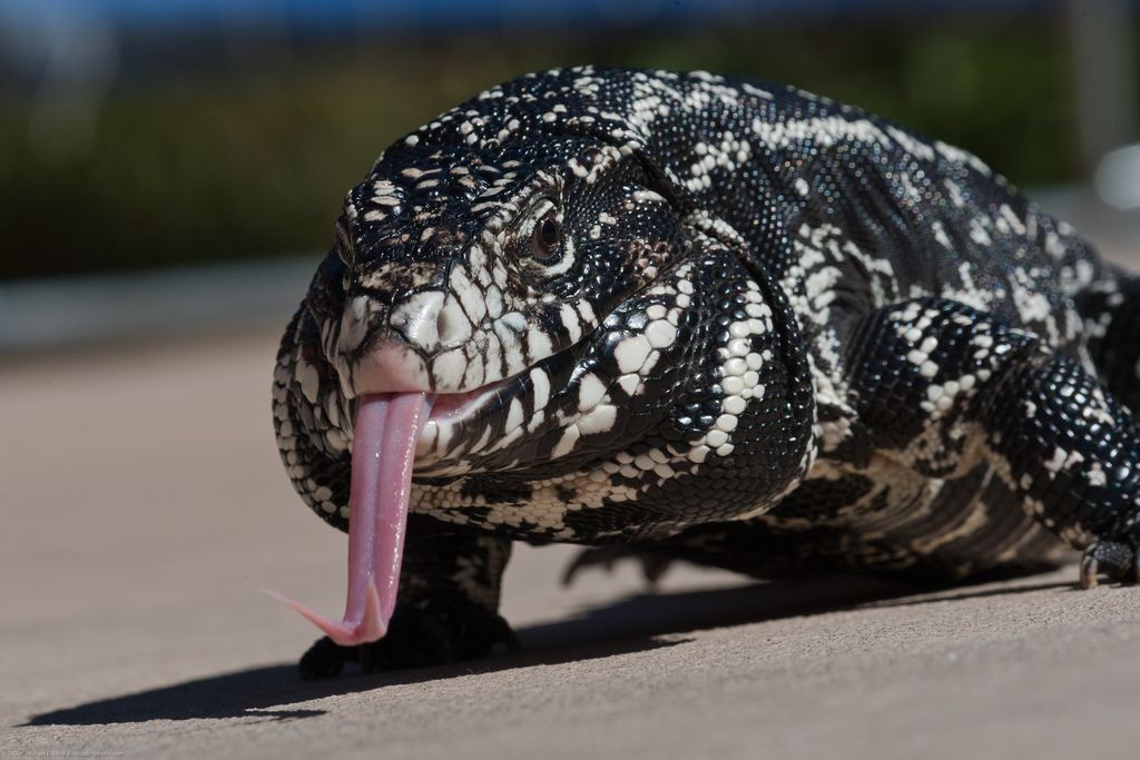 Khi bị đe dọa, chúng có cú quật đuôi cực mạnh. Đuôi của thằn lằn tegu đỏ có thể gây thương tích đáng kể, là vũ khí phòng thủ tự nhiên hiệu quả. Ảnh: Pinterest.
