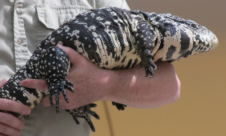 Thằn lằn tegu đỏ có khả năng tăng thân nhiệt như động vật máu nóng. Khác với hầu hết các loài bò sát, thằn lằn tegu đỏ có thể tự tăng nhiệt độ cơ thể trong mùa sinh sản, giúp chúng hoạt động linh hoạt hơn. Ảnh: Pinterest.