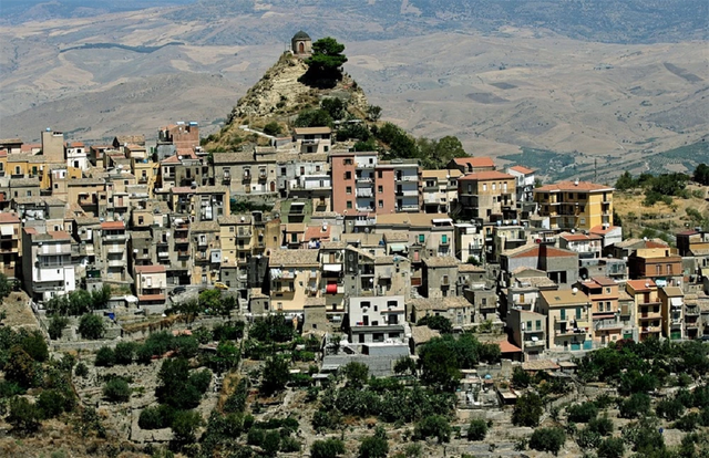 Toàn cảnh ngôi làng Centuripe nằm trên đỉnh núi có hình dáng con người đầy kỳ lạ. Ảnh: Visit Italia.
