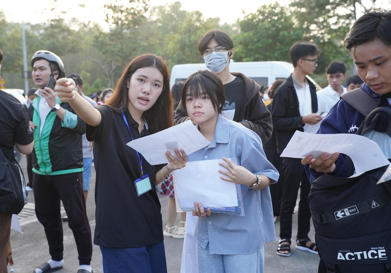 Một hình ảnh đẹp của ngày thi đầu tiên là có sự tiếp sức tận tình của lực lượng sinh viên tình nguyện. Tại điểm thi Trường ĐH Công nghệ Thông tin, một sự cố nhỏ đã xảy ra khi thí sinh quên căn cước công dân và gặp trục trặc khi đăng nhập ứng dụng VNeID. Nhờ sự phản ứng nhanh nhạy của đội ngũ tình nguyện viên trong việc hỗ trợ kỹ thuật và liên hệ gia đình, thí sinh này đã kịp thời hoàn tất thủ tục để bước vào phòng thi đúng quy định.