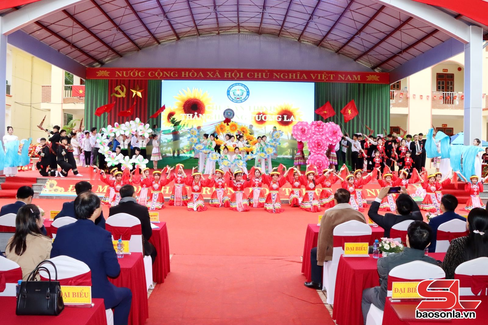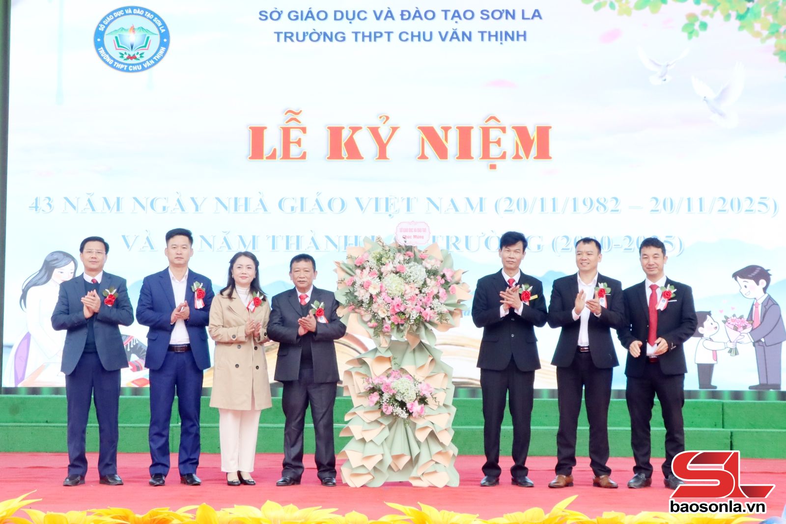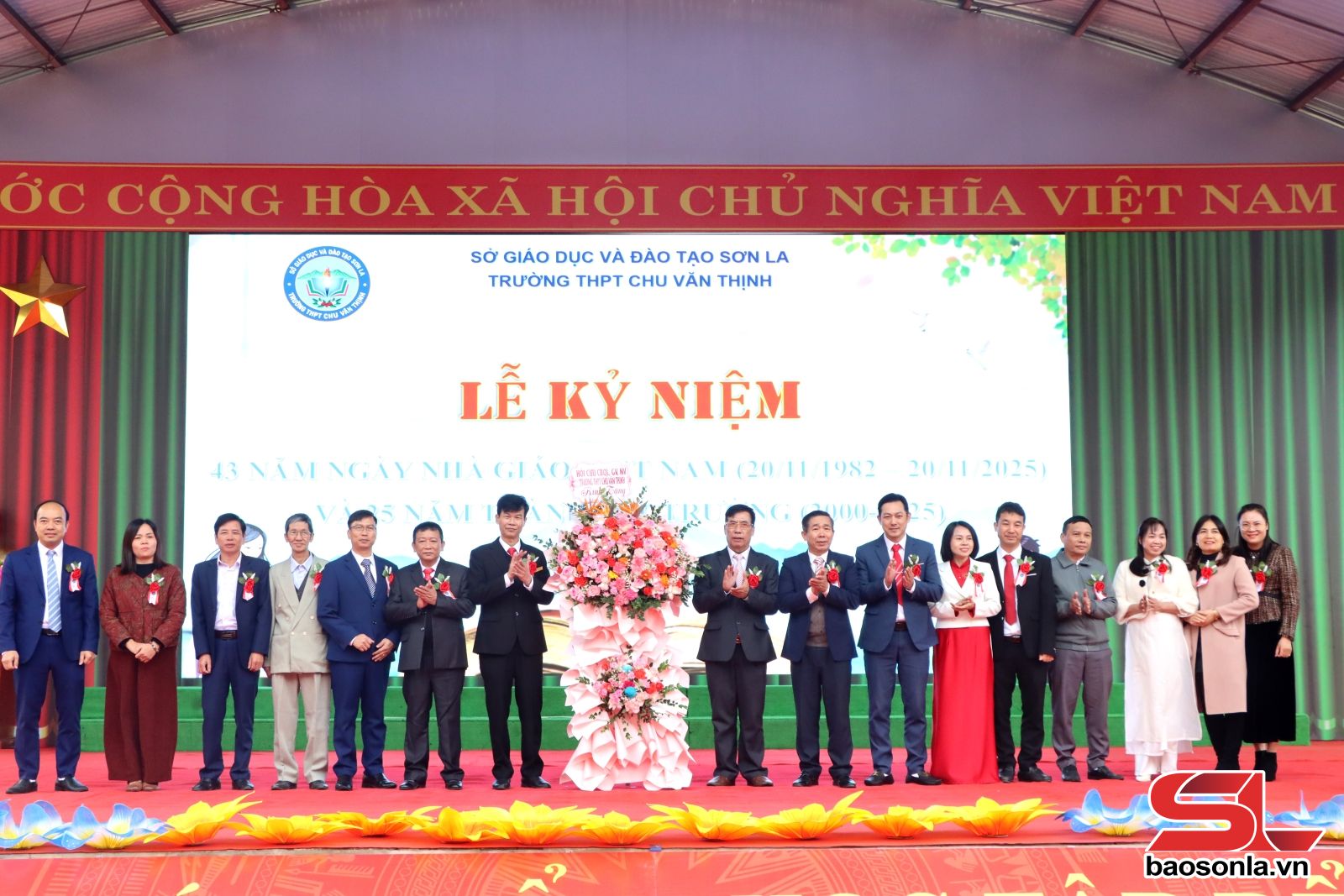 Lãnh đạo Sở GD&ĐT tặng hoa chúc mừng Trường THPT Chu Văn Thịnh.