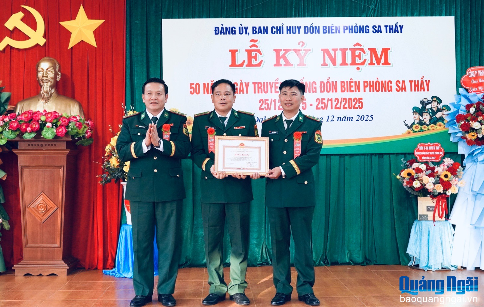 Phát biểu tại buổi lễ, Đại tá Trương Thiên An - Ủy viên Ban thường vụ quân sự, Phó Chính ủy Bộ chỉ huy quân sự tỉnh, Bí thư Đảng ủy, Chính ủy Ban chỉ huy bộ đội biên phòng tỉnh Quảng Ngãi biểu dương, chúc mừng những kết quả, thành tích nổi bật mà cán bộ, chiến sĩ Đồn Biên phòng Sa Thầy đã đạt được trong suốt chặng đường 50 năm xây dựng và trưởng thành.