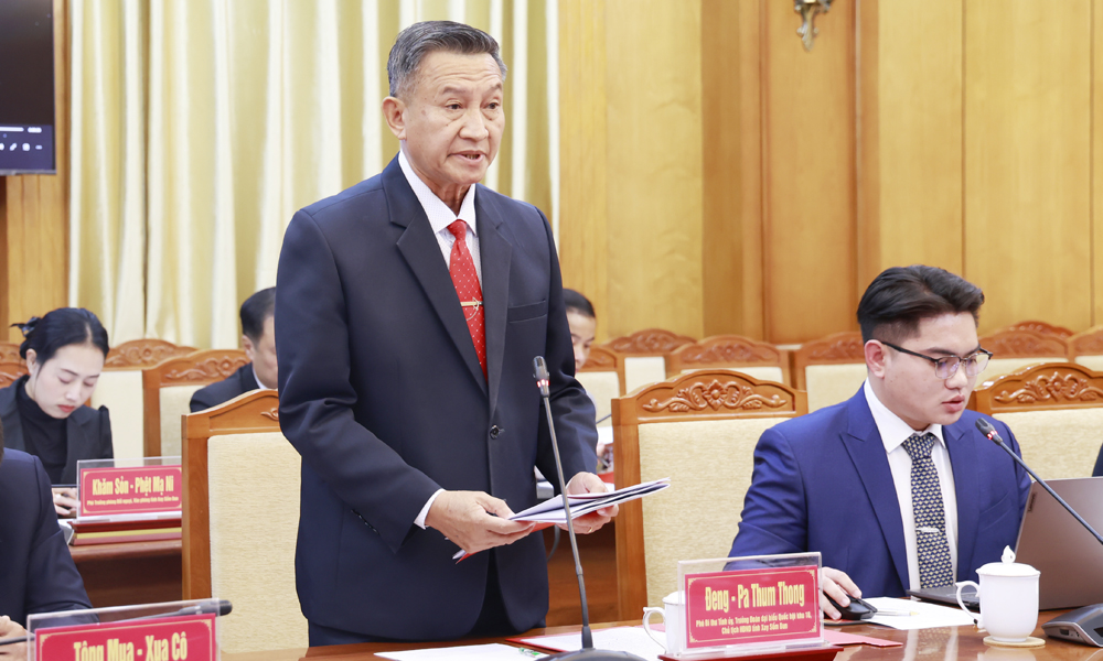 Lãnh đạo tỉnh Xay Sổm Bun phát biểu tại một buổi làm việc với lãnh đạo tỉnh Bắc Ninh.