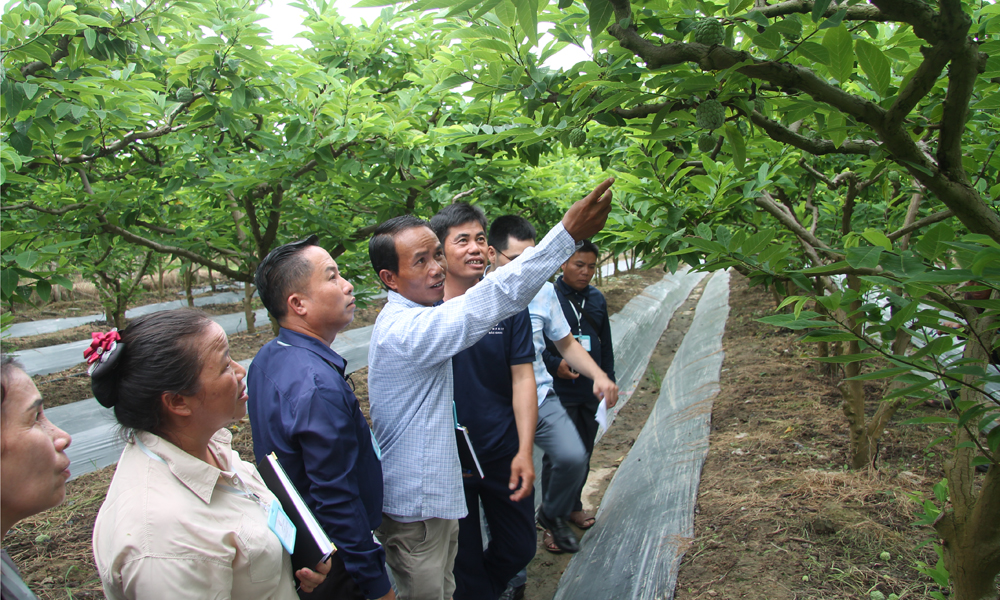 Đoàn cán bộ, nông dân tỉnh Xay Sổm Bun học tập kinh nghiệm trồng cây ăn quả tại tỉnh Bắc Ninh.