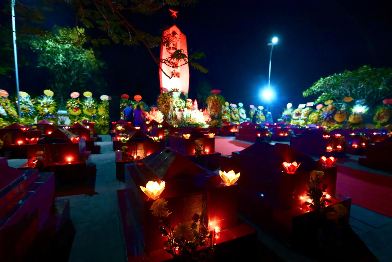 Hàng ghế đầu tưởng niệm các liệt sĩ TNXP tại hang Hỏa Tiễn. Ảnh: Võ Khánh