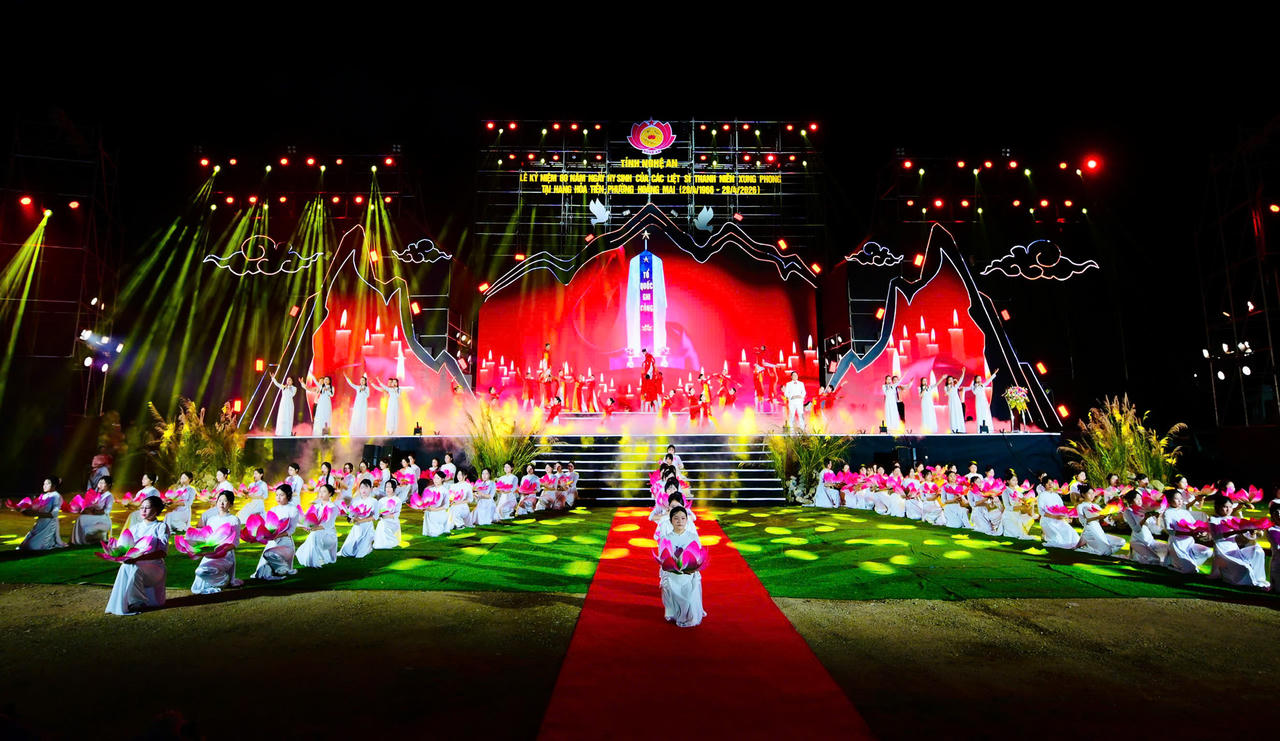 Tối 28/4/2026, tại Khu di tích Hang Hỏa Tiễn và Nghĩa trang liệt sĩ đường sắt, phường Hoàng Mai, UBND tỉnh Nghệ An long trọng tổ chức Lễ kỷ niệm 60 năm ngày hy sinh của 33 liệt sĩ Thanh niên xung phong tại Hang Hỏa Tiễn (28/4/1966 – 28/4/2026).