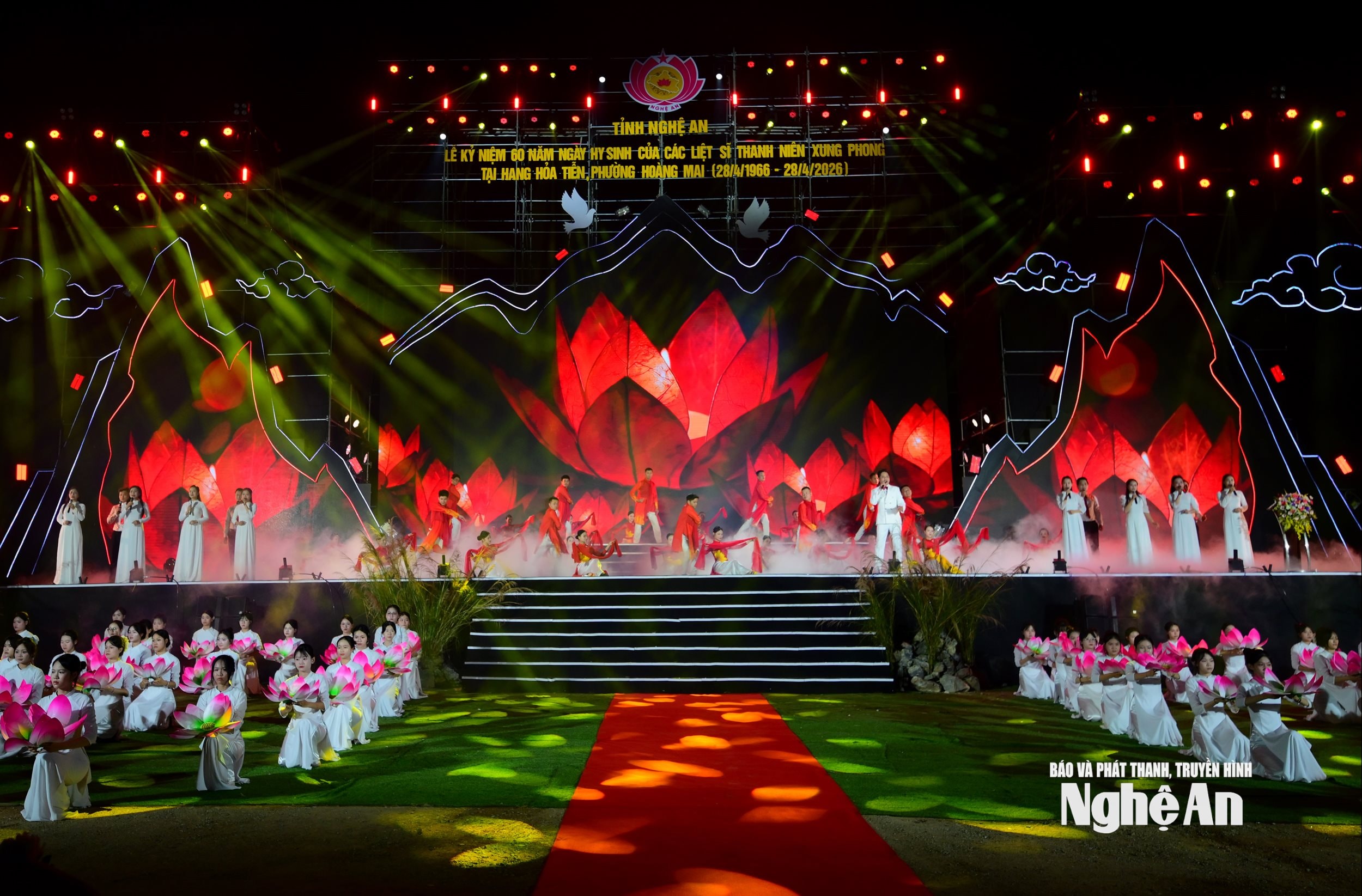 Điểm nhấn tại buổi lễ là chương trình sử thi nghệ thuật “Lửa thiêng trong đá” – một tác phẩm dàn dựng công phu, tái hiện lại toàn bộ câu chuyện lịch sử tại Hang Hỏa Tiễn qua ba chương: “Một thời để nhớ”, “Lửa thiêng trong đá” và “Sáng mãi với thời gian”. Bằng ngôn ngữ nghệ thuật, chương trình đã khắc họa sâu sắc hình ảnh những thanh niên xung phong quả cảm, làm sống dậy một thời oanh liệt nhưng cũng đầy mất mát, hy sinh.