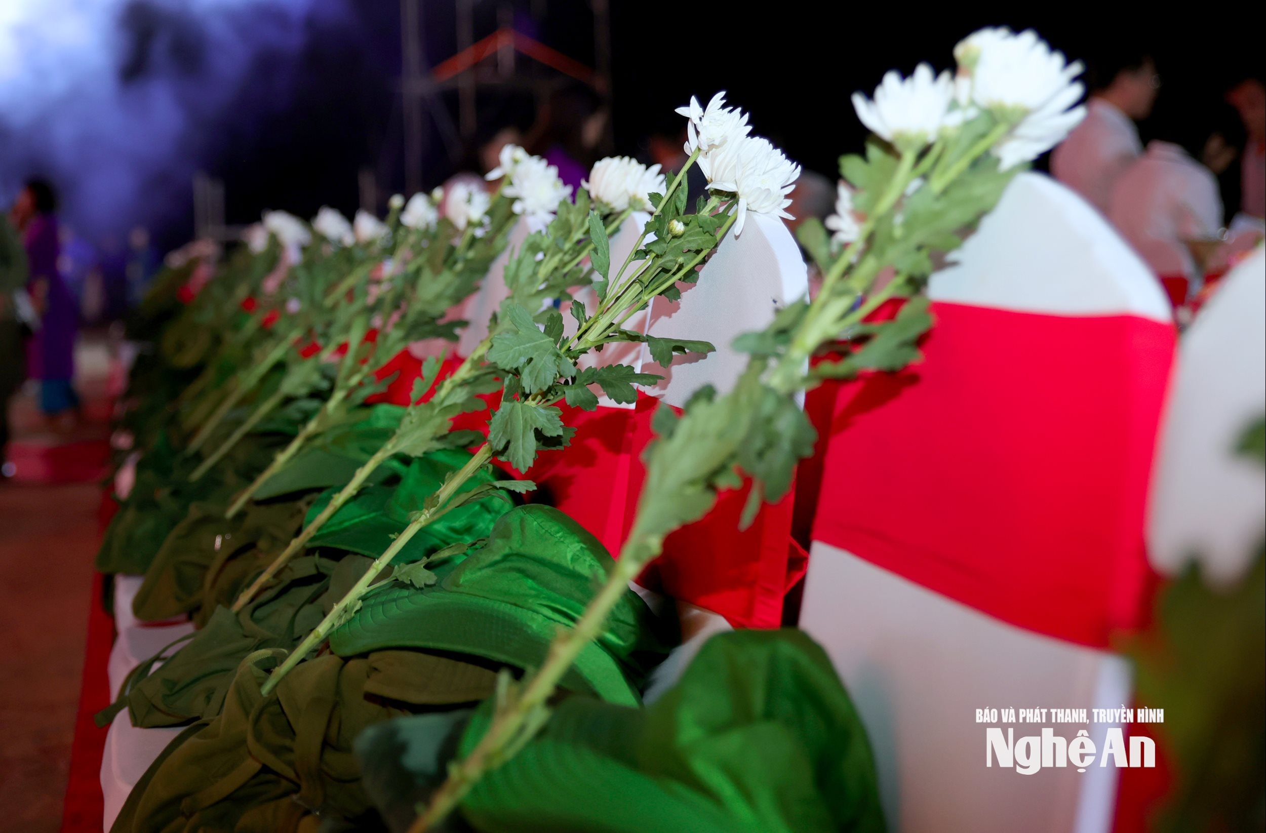 Hàng ghế trang trọng đầu tiên dành cho các anh hùng đã ngã xuống tại hang Hỏa Tiễn. Ảnh: Quang An