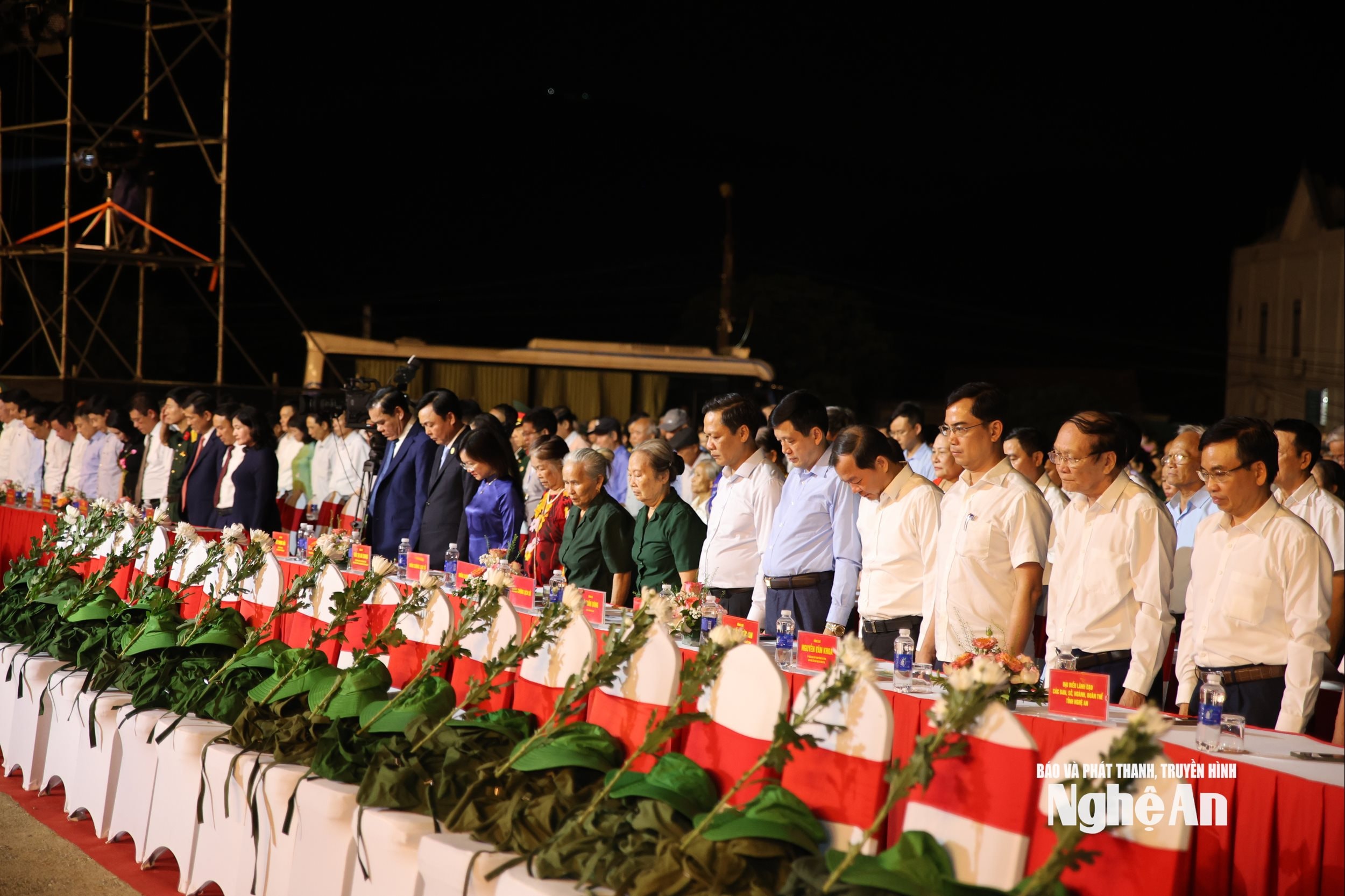 Đại biểu và người dân dành phút mặc niệm tưởng nhớ các liệt sĩ. Ảnh: Quang An