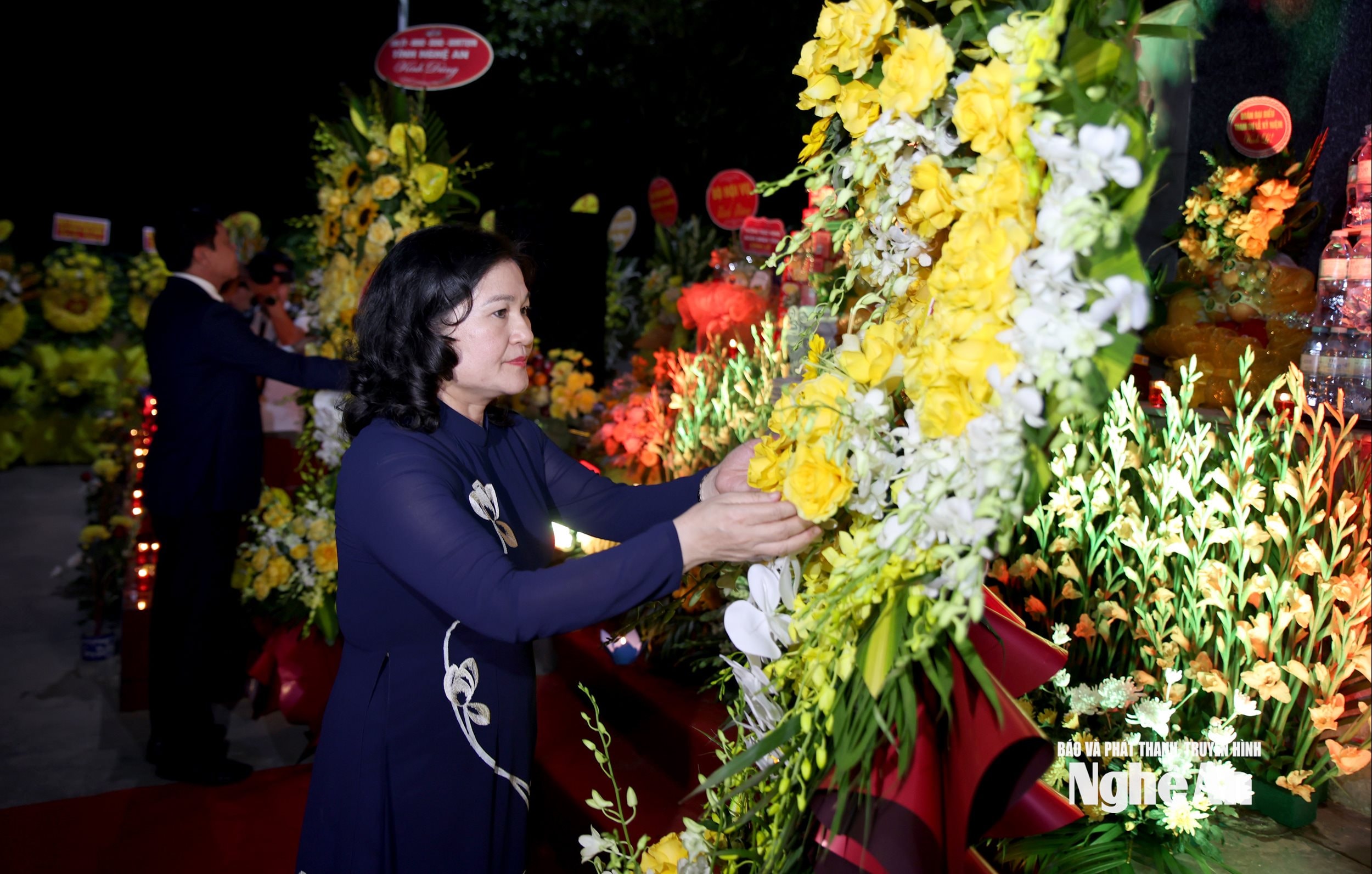 Đồng chí Nguyễn Thị Hà - Thứ trưởng Bộ Nội vụ dâng hoa lên các Anh hùng liệt sĩ. Ảnh: Quang An