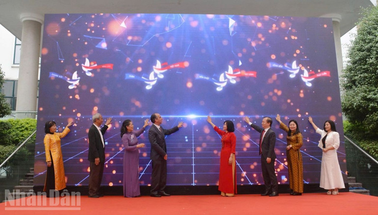 Các đại biểu thực hiện nghi thức khai mạc triển lãm.