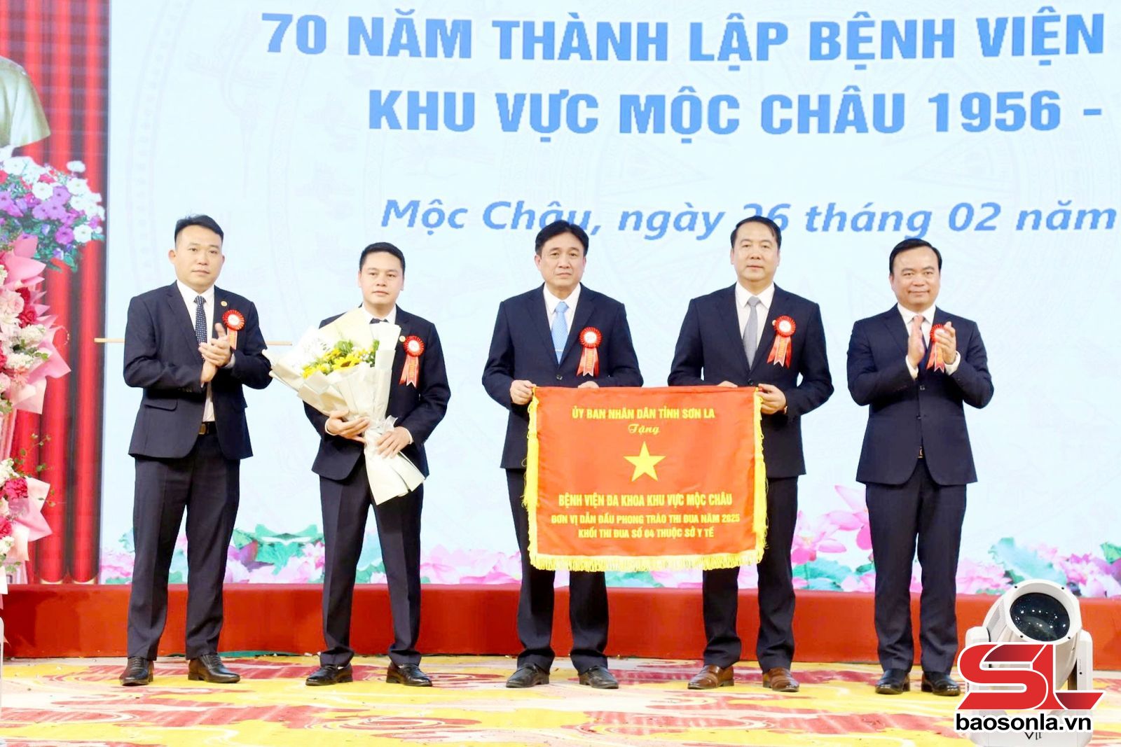 Lãnh đạo UBND tỉnh trao Cờ thi đua cho Bệnh viện Đa khoa khu vực Mộc Châu đã có thành tích xuất sắc, dẫn đầu phong trào thi đua 2025.