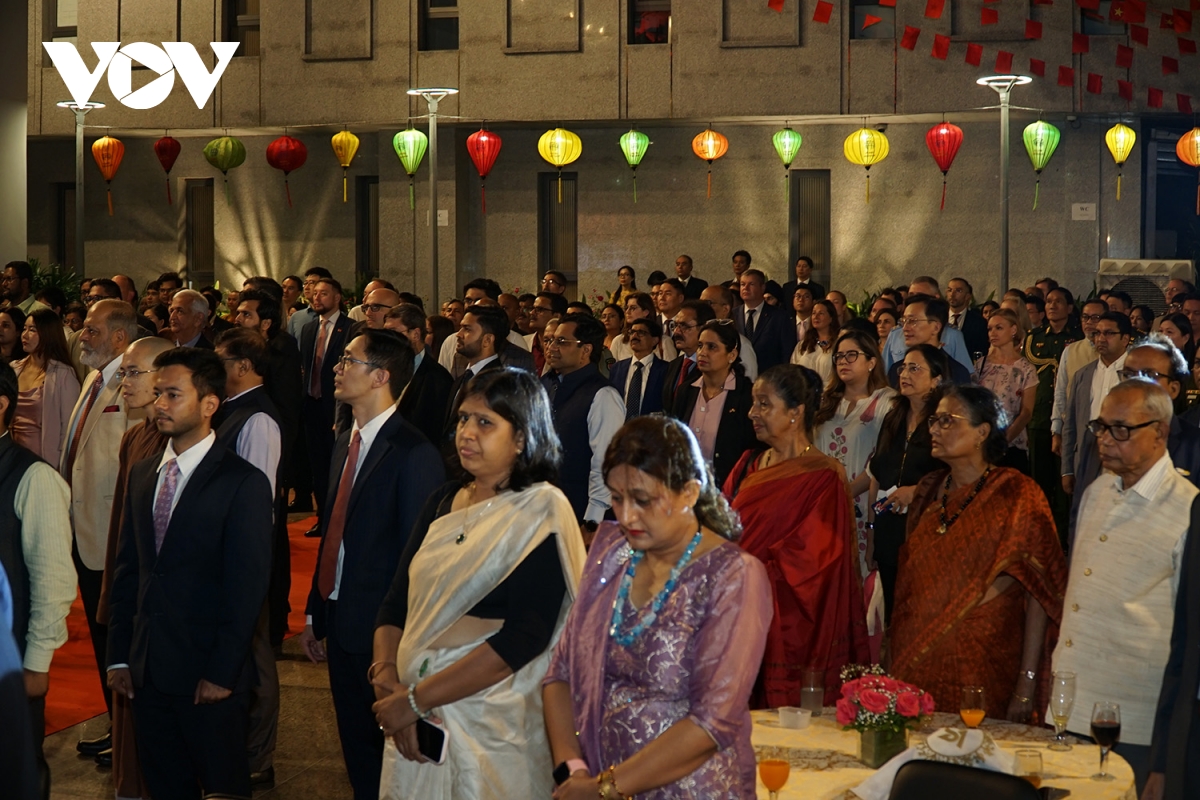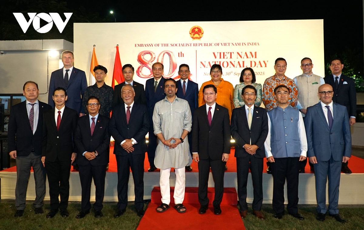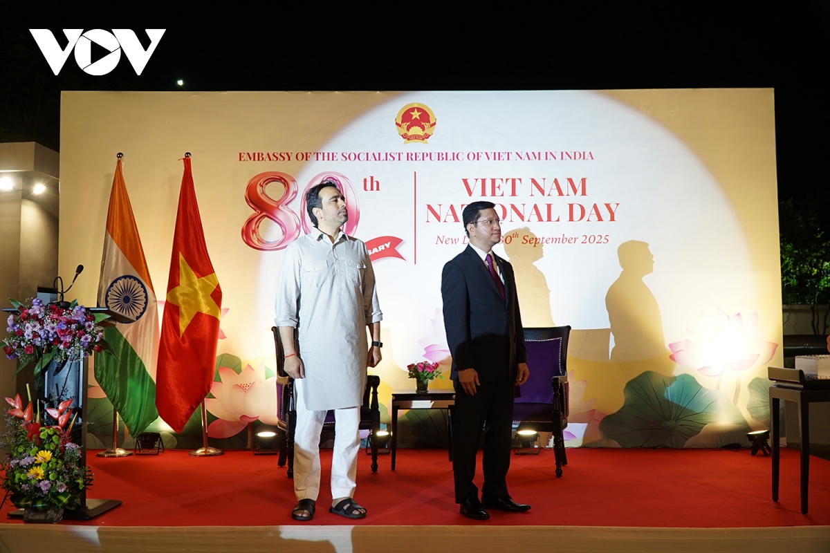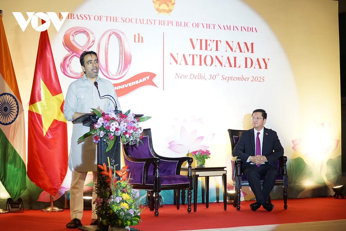 Đông đảo đại diện các bộ ngành Chính phủ Ấn Độ, ngoại giao đoàn tại thủ đô New Delhi, học giả, bạn bè Ấn Độ, cộng đồng người Việt Nam đang sinh sống, học tập và làm việc tại Ấn Độ đã tới dự lễ kỷ niệm 80 năm Quốc khánh (2/9/1945- 2/9/2025) tối 30/9.