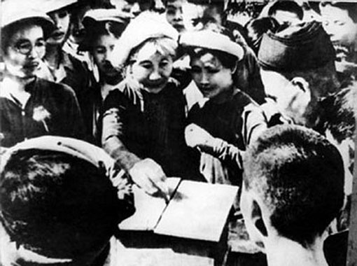 Cử tri ngoại thành Hà Nội bỏ phiếu bầu đại biểu Quốc hội khóa I ngày 06/01/1946. Ảnh: Tư liệu