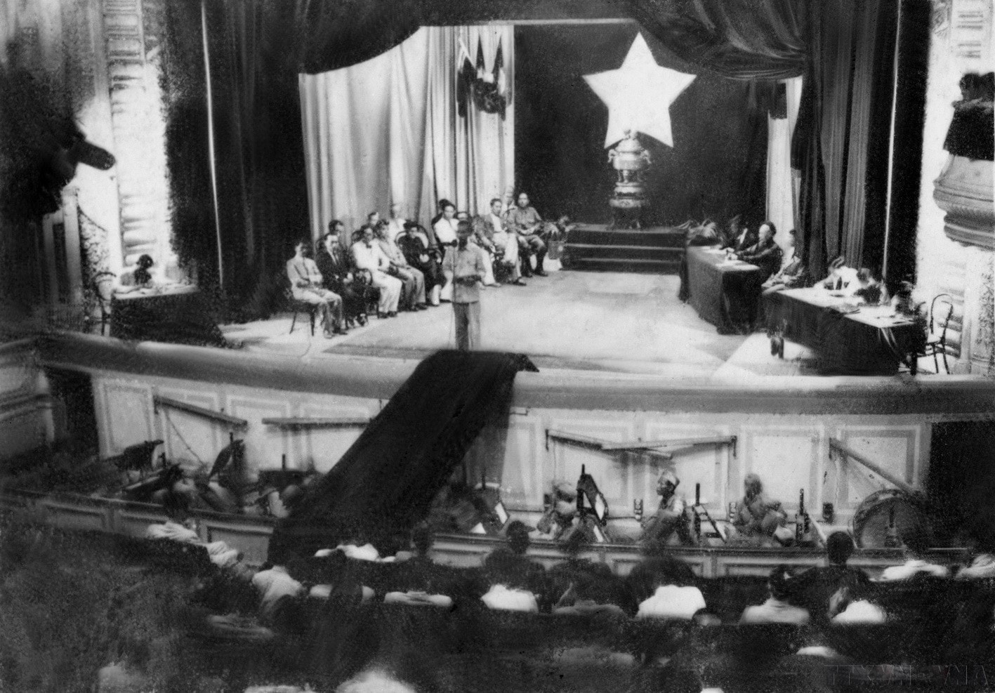 Ngày 2/3/1946, Quốc hội khóa I họp Kỳ họp thứ Nhất đã cử Chính phủ Liên hiệp kháng chiến do Chủ tịch Hồ Chí Minh làm Chủ tịch. Trong ảnh: Chủ tịch Hồ Chí Minh đọc Lời Tuyên thệ trước Quốc hội. Ảnh: Tư liệu TTXVN