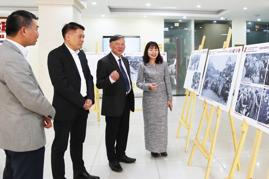 Các đại biểu tham quan khu trưng bày tại Hội thảo khoa học “85 năm Ngày Bác Hồ về nước (28/1/1941 - 28/1/2026): Sự kiện khởi đầu cho những thắng lợi vĩ đại của cách mạng Việt Nam”. Ảnh: Thanh Hiếu