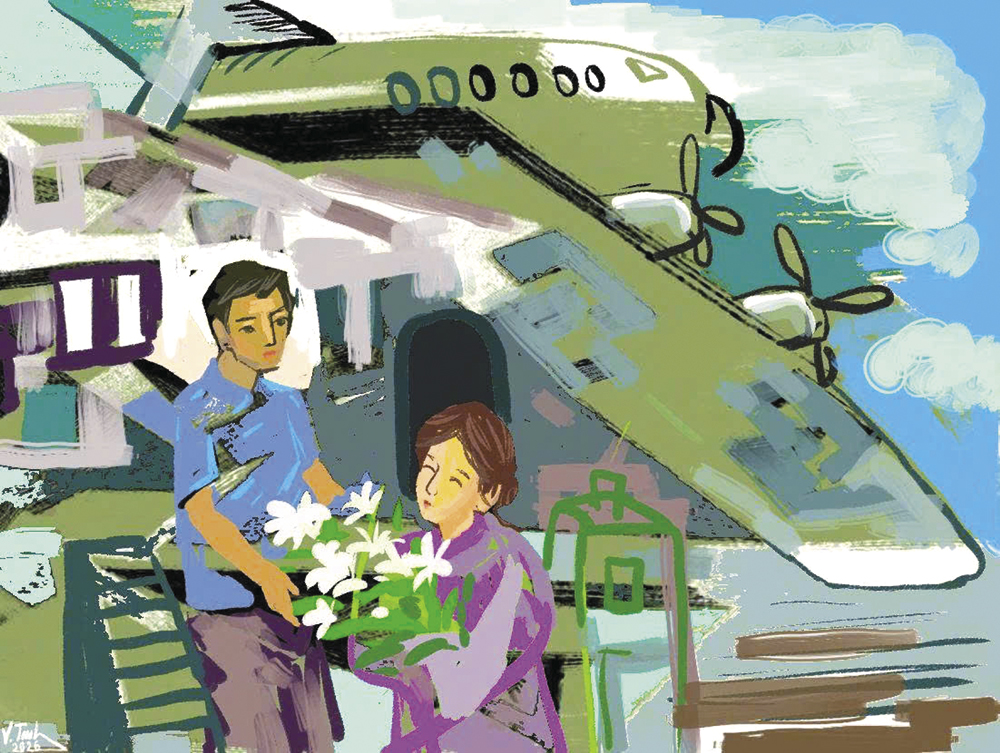Dù đã trao bó hoa cho Lâm, người phụ nữ vẫn dõi mắt quan sát. Khi thấy Lâm cẩn thận lựa chiều, đặt bó hoa thật gọn gàng, chị nở nụ cười, nhìn anh với vẻ biết ơn rồi ngồi xuống ghế thắt dây an toàn. Chuyến bay hôm ấy vắng, chiếc ghế ở giữa không có khách, Lâm quay sang bắt chuyện: “Chị ở Hà Nội vào Sài Gòn?. “ Vâng, tôi vào có chút việc, mai lại bay ra…”. “Sao gấp vậy chị?”. “Thì cũng chẳng có việc gì nhiều”.