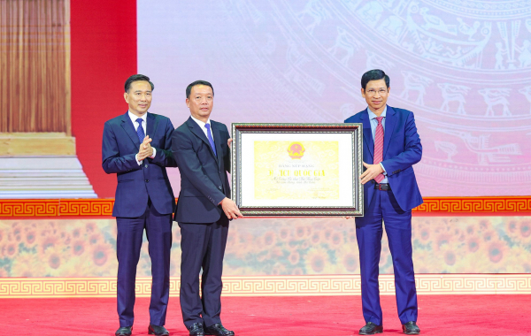 Thứ trưởng Bộ VH-TT&DL Hồ An Phong trao bằng công nhận Di tích lịch sử cấp Quốc gia đối với Khu mộ Tổng Bí thư Hà Huy Tập.