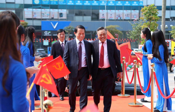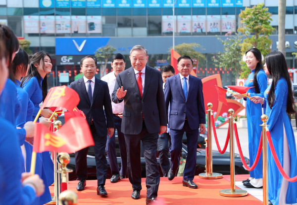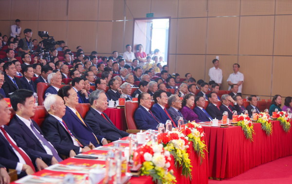 Đồng chí Tô Lâm, Tổng Bí thư, Chủ tịch nước và đồng chí Trần Cẩm Tú, Ủy viên Bộ Chính trị, Thường trực Ban Bí thư tới tham dự buổi lễ.