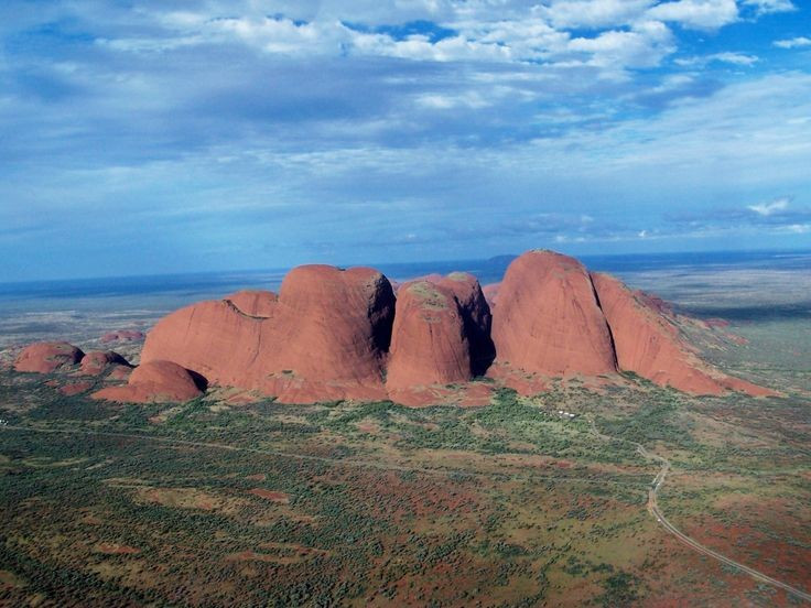 Tên gọi Kata-Tjuta nghĩa là “nhiều đầu”. Tên gọi này ám chỉ 36 khối đá tròn khổng lồ nằm gần tảng đá Uluru, tạo nên khung cảnh hùng vĩ giữa sa mạc. Ảnh: Pinterest.